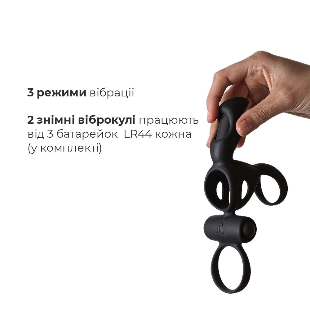 А еще, игрушка утолщает половой член мужчины, и точно приятно удивит партнершу двойным удовольствием! Обязательно попробуйте эту интересную секс-игрушку 4 в 1. Для мужчины - это вибрация полового члена плюс стимуляция мошонки, а для женщины - вагинальная и клиторальная стимуляция плюс утолщение полового члена мужчины. Вибронасадка на член Spartacus R порадует Вас тремя режимами вибрации для каждого отростка (три режима вибрации для зоны клиторальной стимуляции и три режима вибрации для стимуляции мошонки). Не смотря на небольшой размер и легкий вес эрекционного кольца, у него два мощных моторчика!