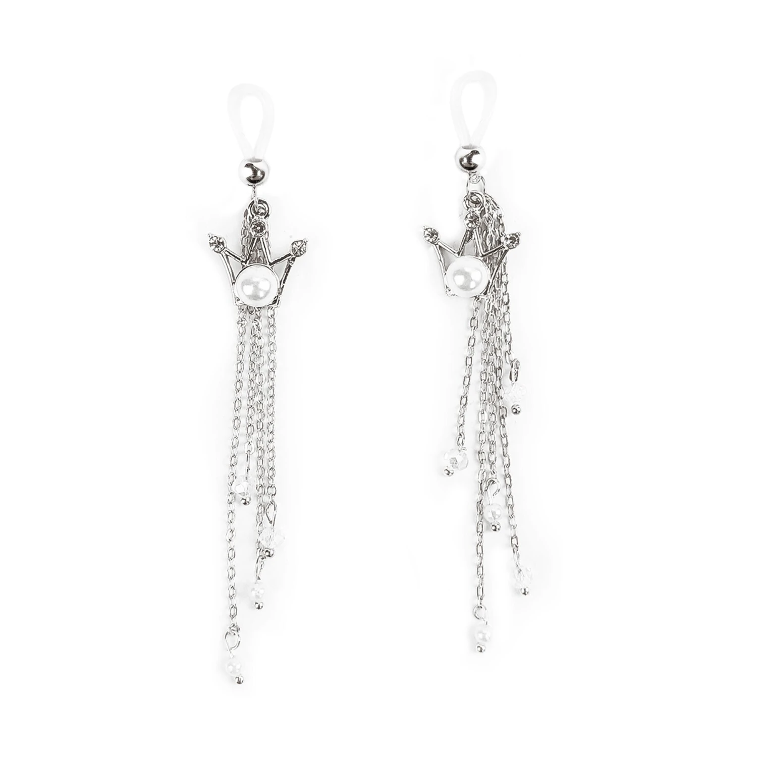 Украшения для груди Art of Sex - Crown для тех, кто не хочет чувствовать боль и дискомфорт во время секса. Вместо металлических зажимов украшения крепятся на соски с помощью силиконовых петелек. Аксессуары декорированы коронами и металлическими цепочками, которые будут точно повторять движения Вашего тела.
