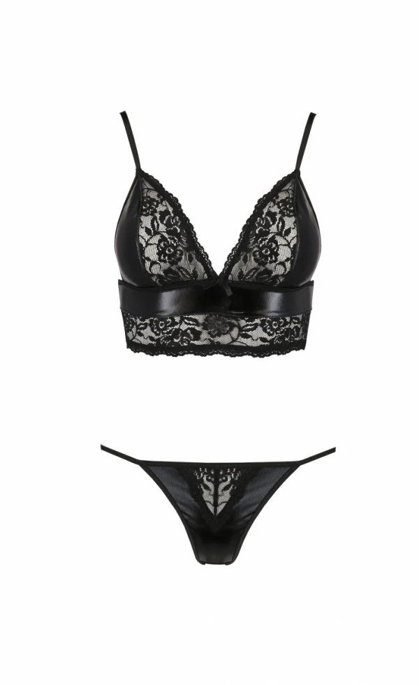Предлагаем купить комплект ASUNA SET, в который входит трендовый бюстгальтер-браллет на шнуровке и трусики. Сочетание кружева и материала, имитирующего кожу, выглядит смело и сексуально, а удобная регулировка по объему позволяет максимально подогнать бюстгальтер под свою фигуру.