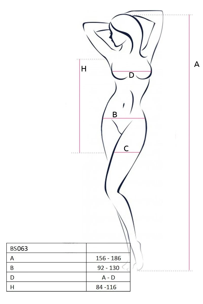 Размер One Size: рост 156–186 см, грудь A-D, обхват бедер 91–130 см, обхват бедра 50–70 см.