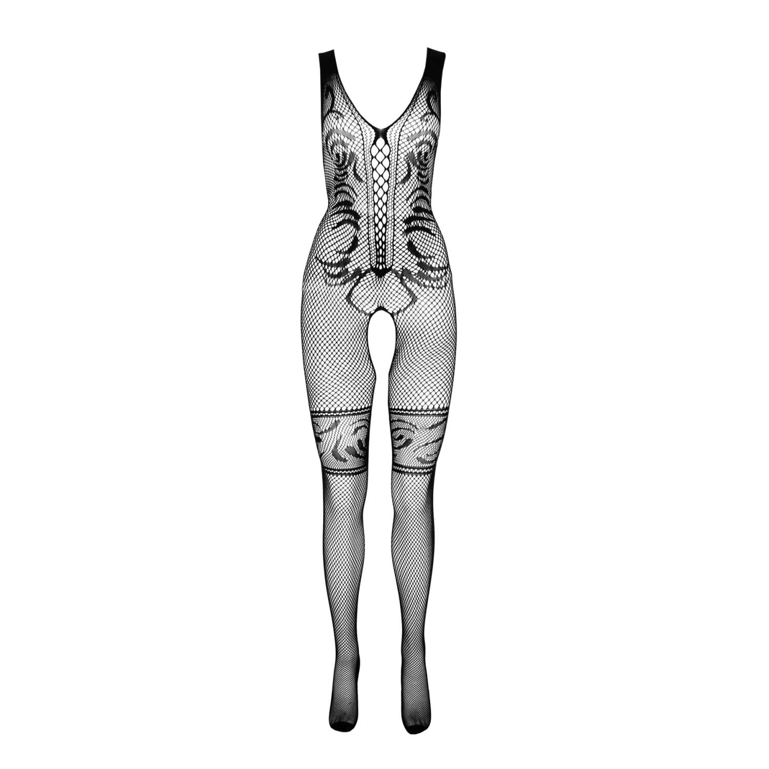 Мягкая сетка, приятно облегающая тело, будет роскошно смотреться на любой фигуре и подчеркнет ее достоинства, а рисунки, имитирующие кружевные подвязки и вставки, сделают образ легким и игривым. Большой вырез, открывающий самые нужные места, позволяет не снимать бодистокинг даже во время самых жарких ласк. Почувствуйте себя свободной и сексуальной!