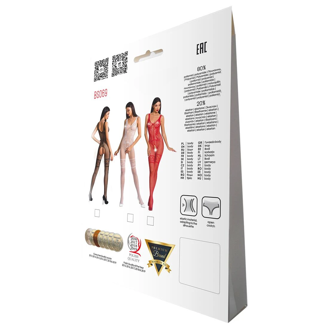 Для суперсексуального образа рекомендуем купить бодистокинг BS069 black. Бодистокинг с красивым рисунком, имитацией чулок и большим вырезом на попке красиво сядет по фигуре, а соблазнительное V-образное декольте завершит образ.
