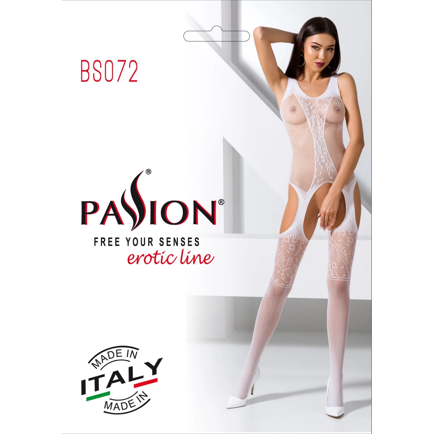 Бодистокинг с имитацией чулок и ажурной вставкой Passion BS072 white
