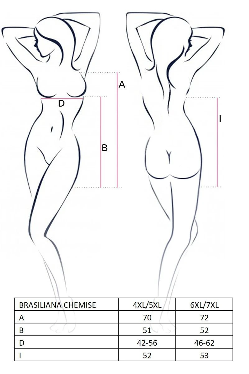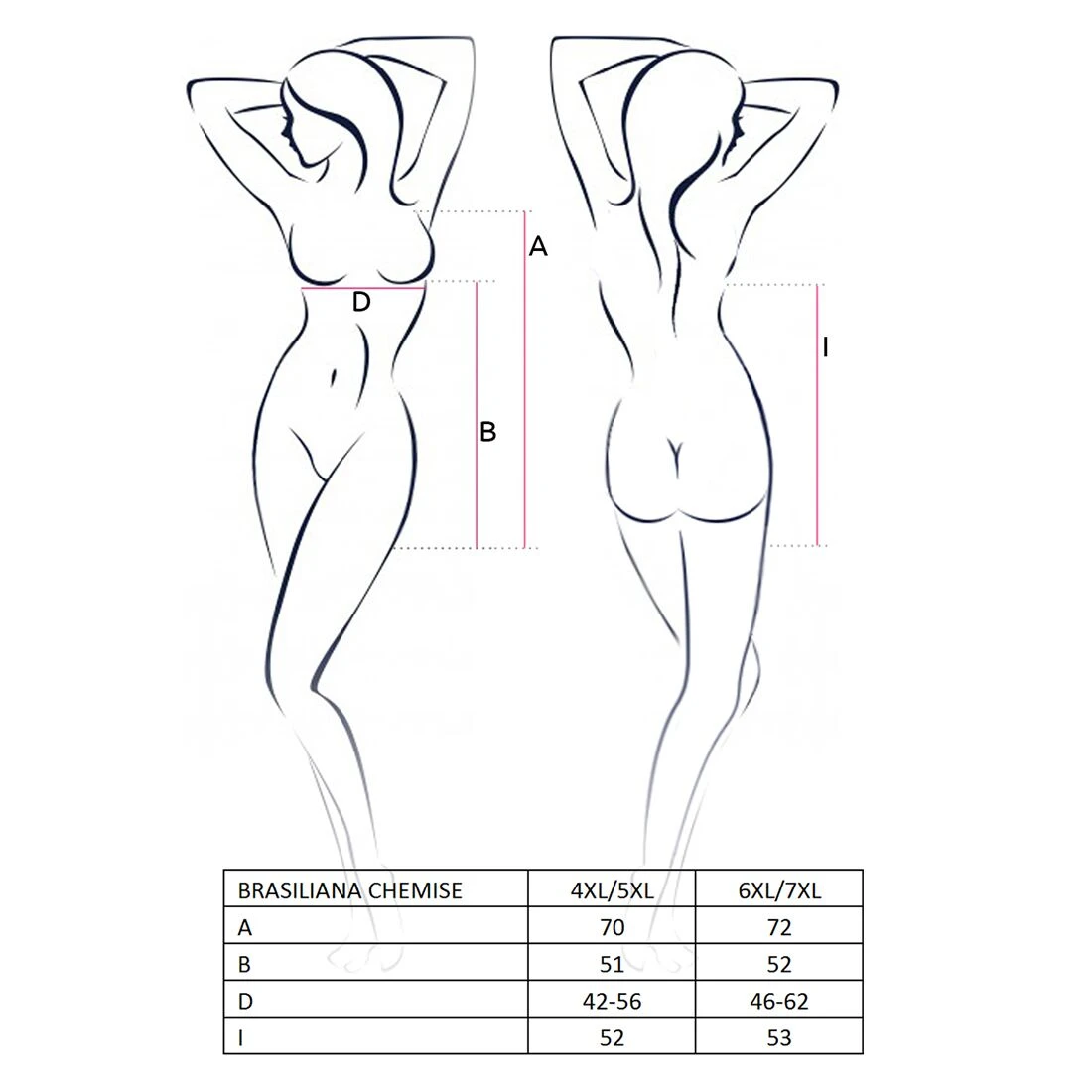Элегантная ночная сорочка Passion BRASILIANA CHEMISE, выполненная из блестящего атласа и полупрозрачного испанского тюля - ваше эротическое оружие на сегодняшний вечер. Декольте украшено красивой отделкой из вышивки, что создает невероятно чувственный образ.