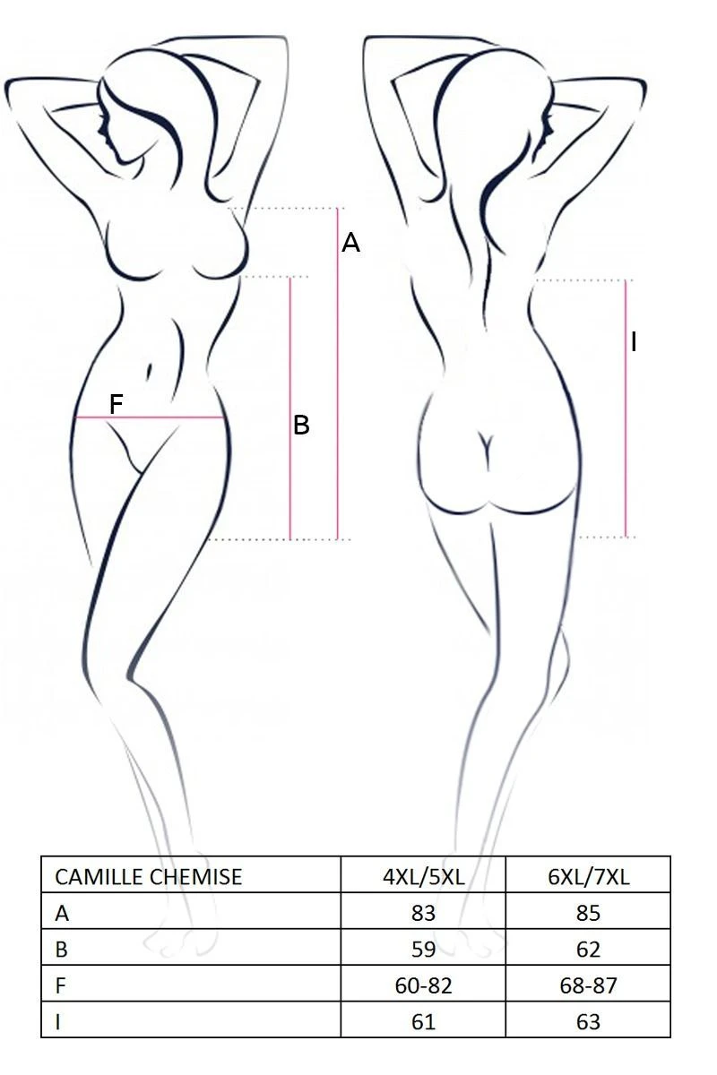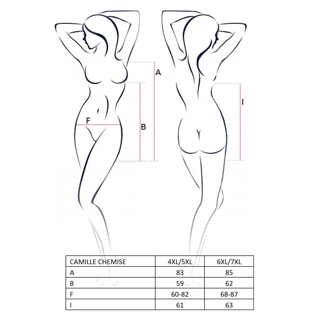 Оригинальное и манящее сексуальное платьице baby doll Passion CAMILLE CHEMISE черное сразу же превращает Вас в изысканную пленительную жрицу любовных утех. Широкая оторочка лифа крупным контрастным белым кружевом приковывает все интимные фантазии к процессу этих великолепных ласк.