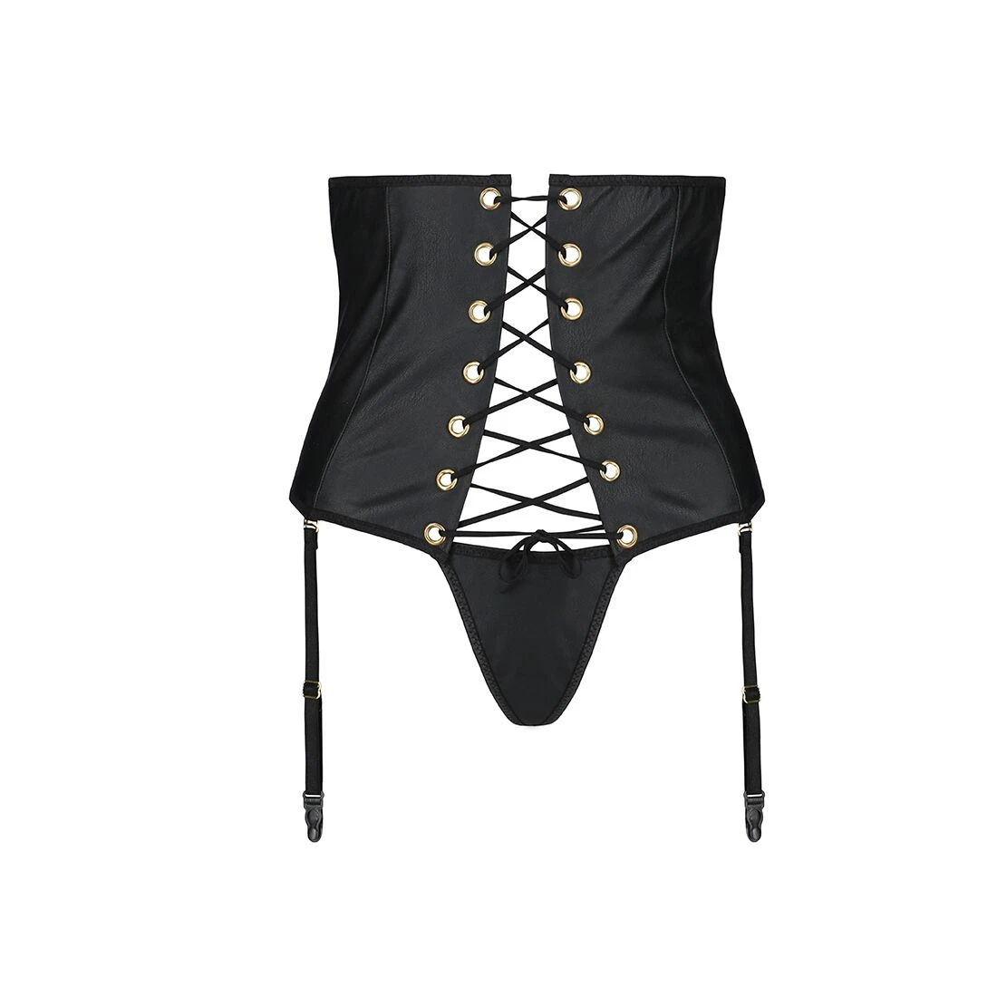 Создайте идеальный силуэт и роскошный образ, купите пояс-корсет из экокожи Celine Set with Open Bra black XXL/XXXL — Passion — проверенный временем инструмент соблазнения, который никогда не выйдет из моды. Элегантный пояс-корсет из материала, имитирующего кожу, с красивой шнуровкой и съемными пажами, дополненный миниатюрными трусиками, поможет вам создать по-настоящему грациозный образ.