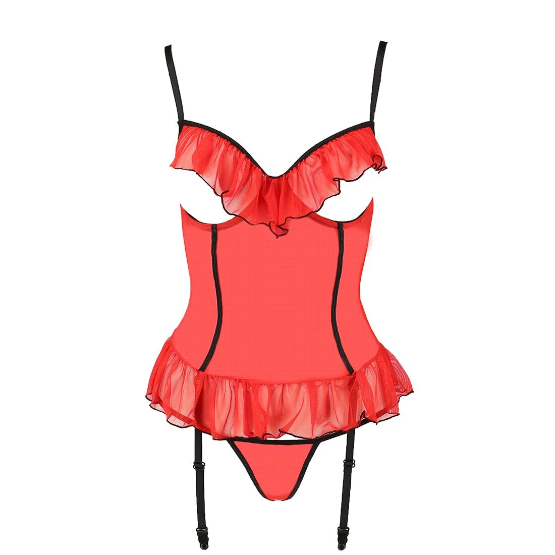 Предлагаем купить корсет CHERRY CORSET red L/XL - Passion Exclusive: современную модель, в которой сочетается классический прозрачный материал и необычная конструкция, открывающая грудь и подчеркивающая ягодицы. Стринги в комплекте.
