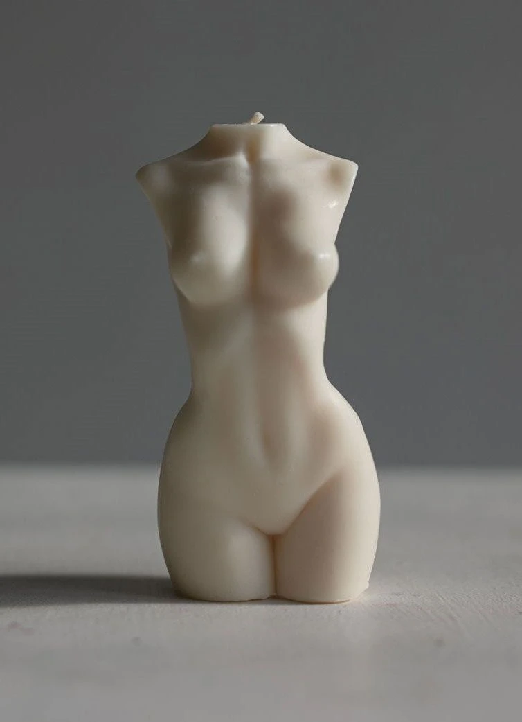 свеча “Венера” в виде женского торса “Чистый кайф” полностью натуральная: 100% экологичный соевый воск без добавок и натуральный хлопковый фитиль;