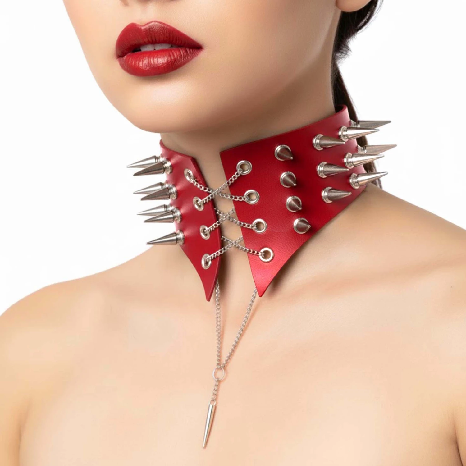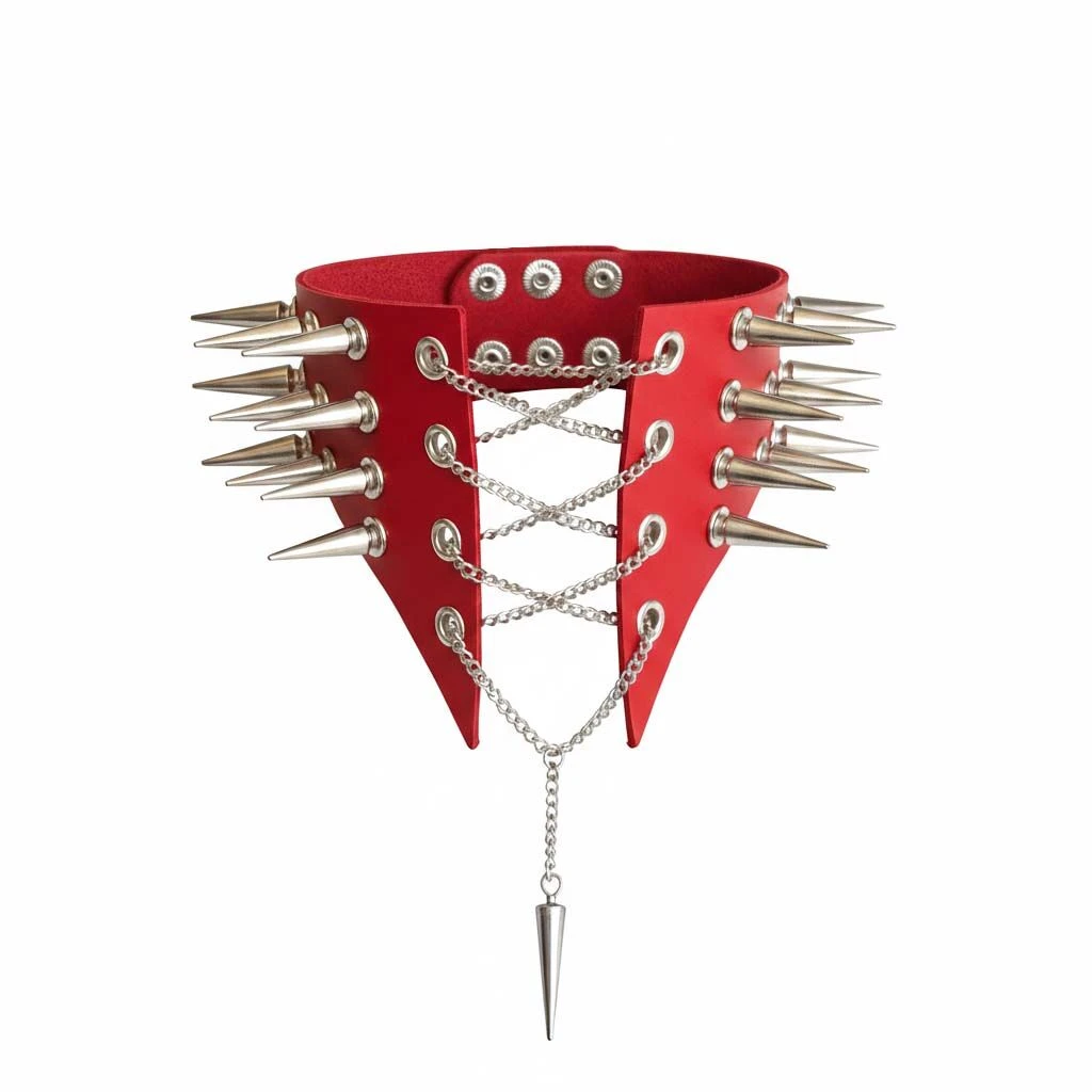 Чокер воротник с шипами Art of Sex - Ariadne, натуральная кожа, цвет красный, XS-M
