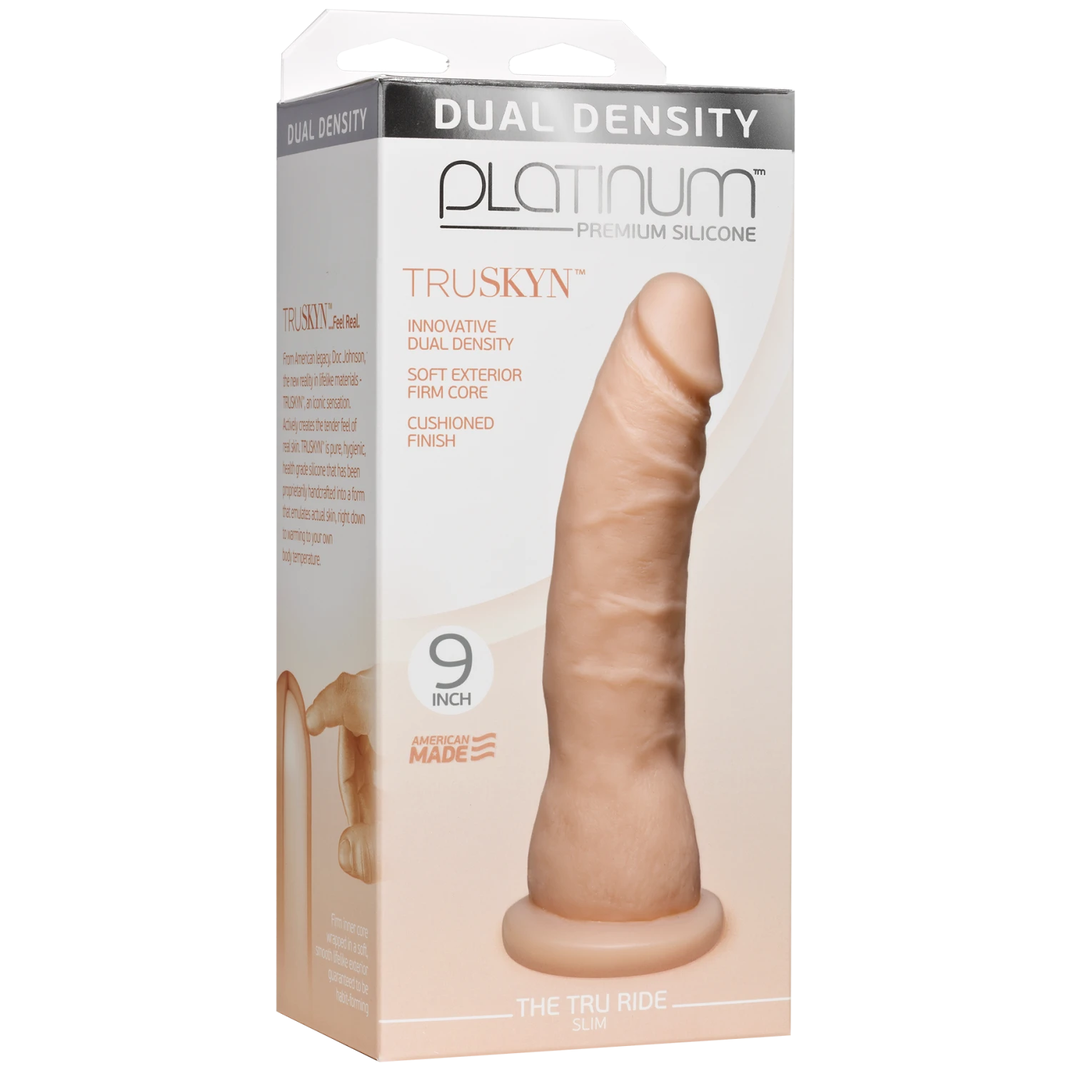 Doc Johnson Platinum TRUSKYN - The Tru Ride Slim достаточно крупный, для того, чтобы игра была безболезненной и максимально комфортной, рекомендуем использовать лубриканты на водной основе.