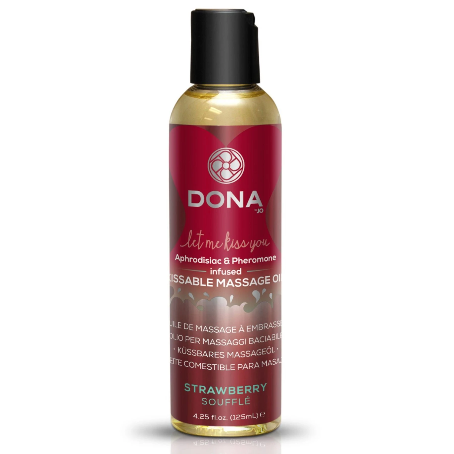 Массажное масло DONA со вкусом Strawberry Souffle сделает эротический массаж и оральные ласки изысканными и сладкими.