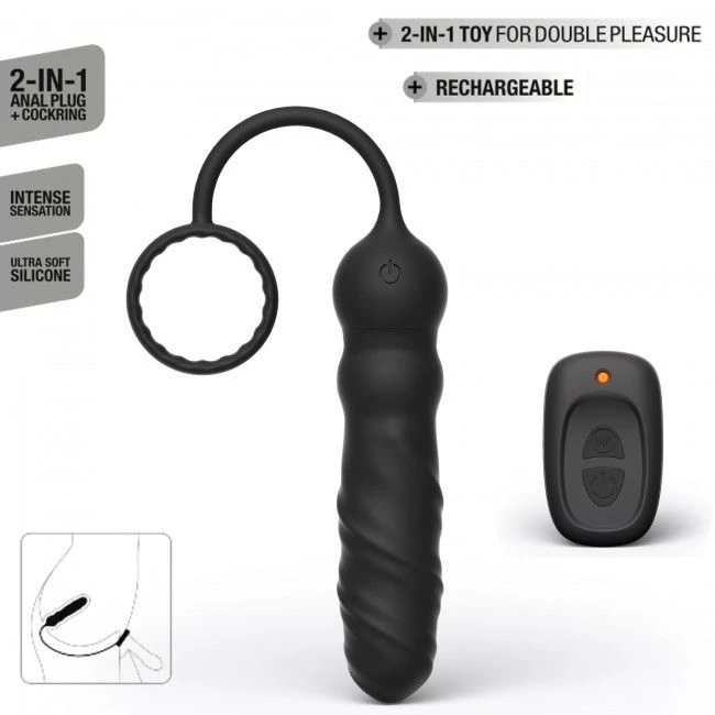 Анальный стимулятор с кольцом на член и пультом ДУ