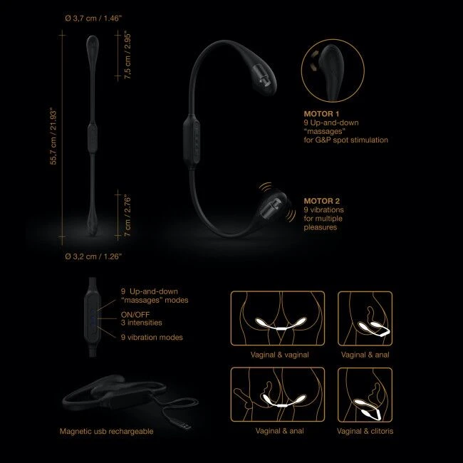 - максимально универсальное использование: часть с шариком идеально подойдет для стимуляции и точки G, и простаты, и клитора, вибрирующая часть очень комфортно ощущается внутри и прекрасно подходит для стимуляции любых наружных эрогенных зон.