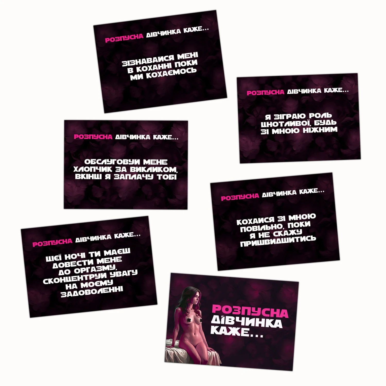 1. У вас есть две колоды карт с заданиями для развратной девочки и плохого мальчика.