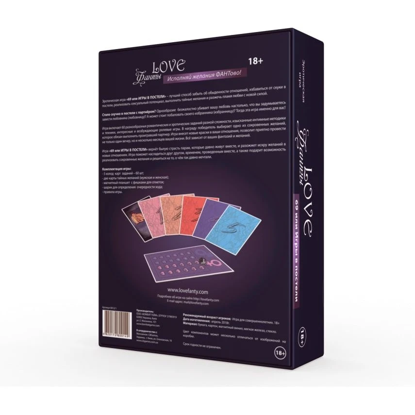 В составе эротической игры «LOVE Фанти: 69 или игра в постели» несколько колод карточек: