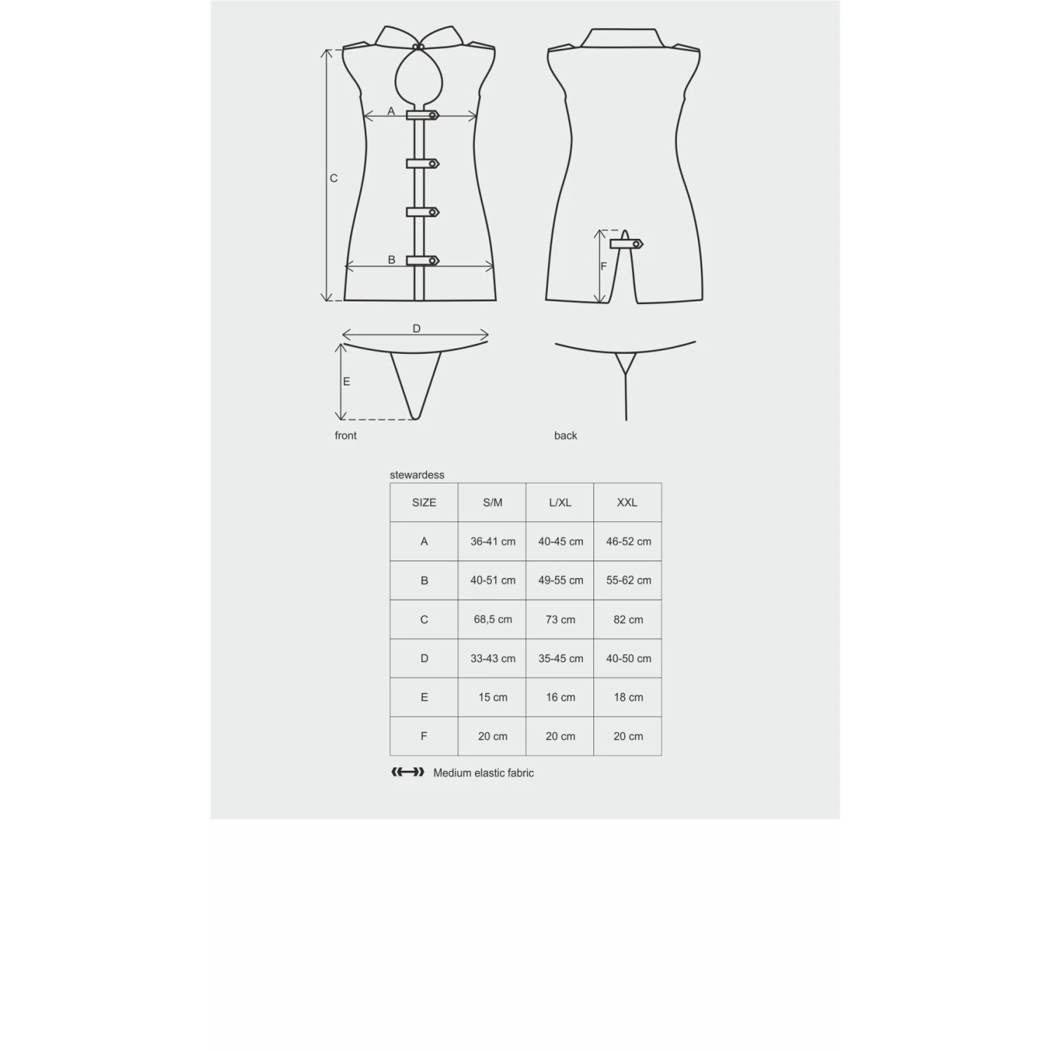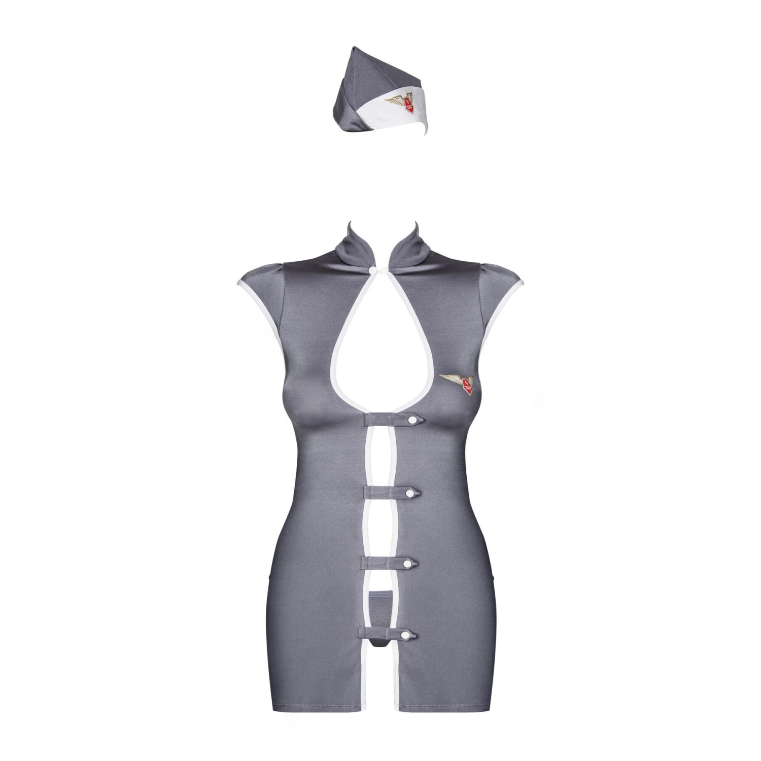 Эротический костюм стюардессы Obsessive Stewardess 3 pcs costume состоит из платья, стрингов и пилотки и упакован в красивую подарочную коробку.