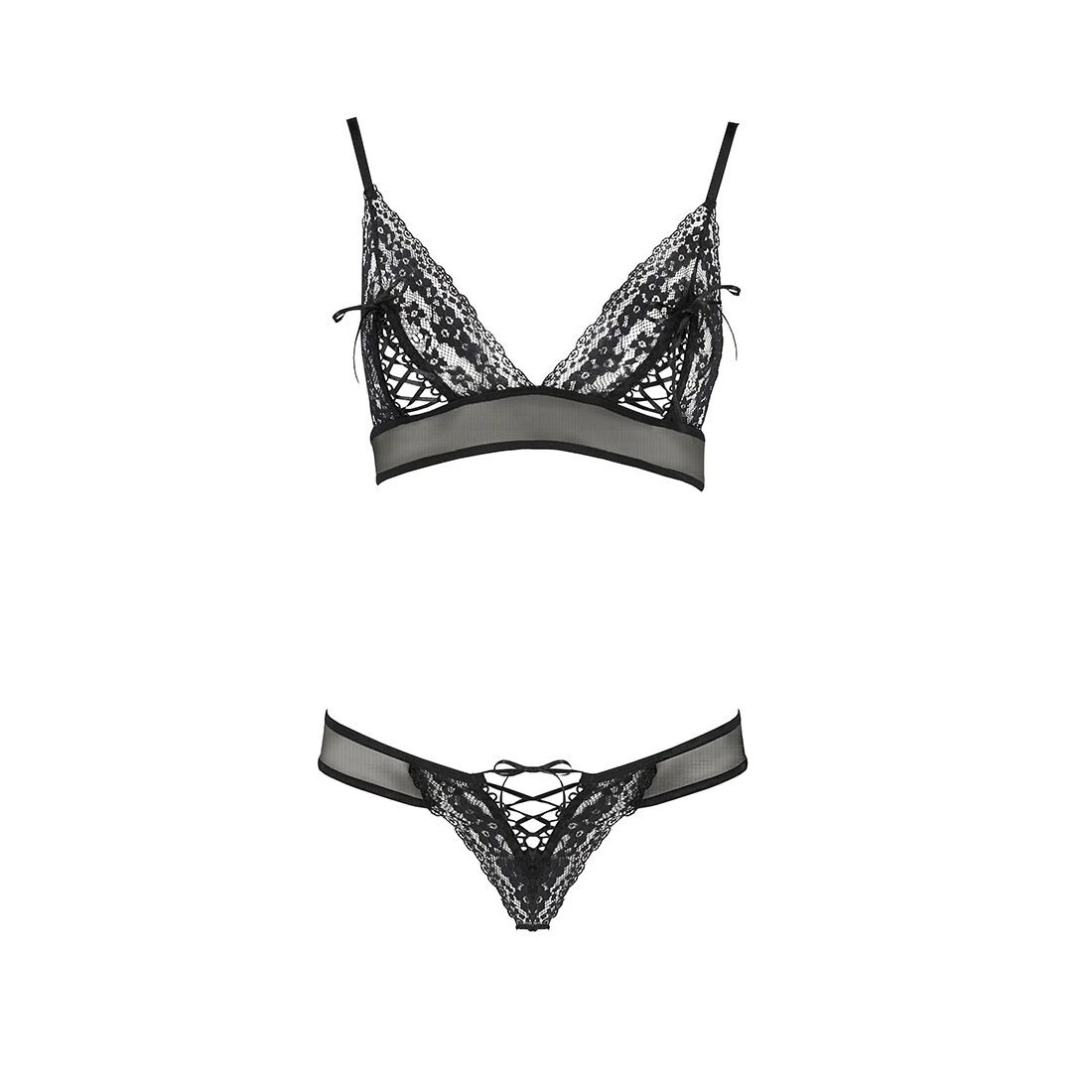 Предлагаем купить комплект ERZA SET black XXL/XXXL - Passion — невероятно женственный, сочетающий чувственное кружево и сексуальную шнуровку. Бюстгальтер красиво приподнимает грудь, а трусики идеально ложится по линии бедра. Шнуровка регулируется, чтобы открыть больше или меньше обнаженного тела, по вашему желанию.