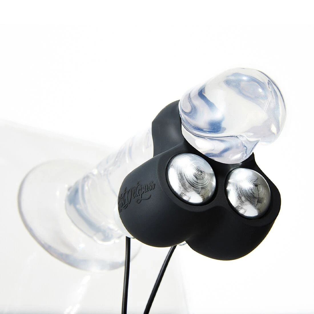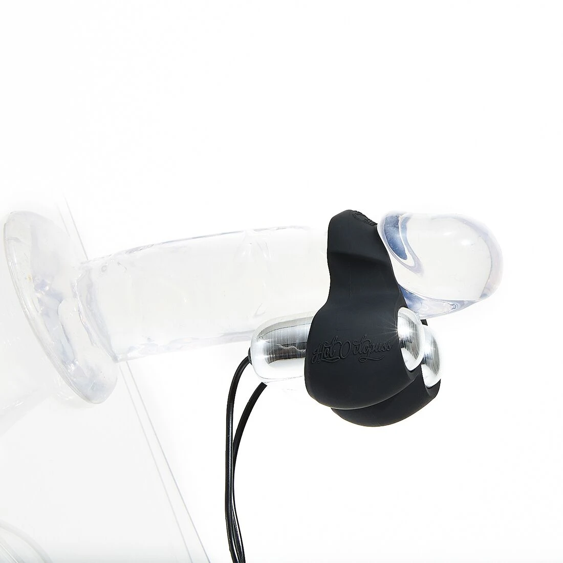 Вибратор состоит из нескольких отдельных составляющих. Первое, что бросается в глаза – это классическое эрекционное кольцо из плотного, гибкого силикона, совместимого с лубрикантами на водной основе. Оно имеет три рабочих отверстия: центральное используется для фиксации на стволе пениса, а нижние два – для крепления маленьких вибропуль, которые будут распространять уровни вибрации вдоль всей его поверхности.
