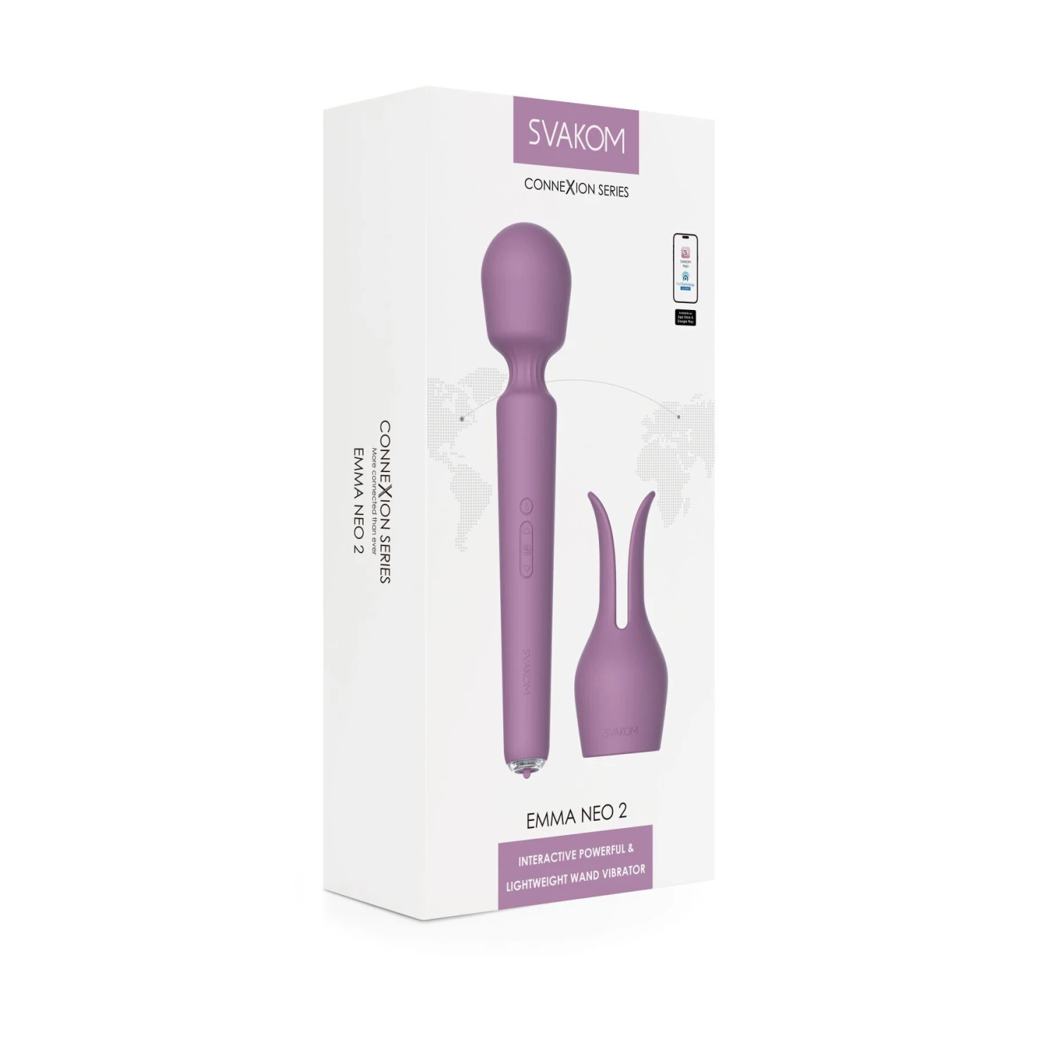 Предлагаем купить интерактивный вибромассажер с подогревом Svakom Emma Neo 2 — обновленную модель популярного вибратора Emma Neo. Еще более мощный, более удобный, с дополнительным интеллектуальным режимом, этот вибромассажер быстро завоюет ваше сердце! Обновленная форма классического ванд-массажера позволяет удобно массажировать любые участки тела и стимулировать любимые эрогенные зоны.