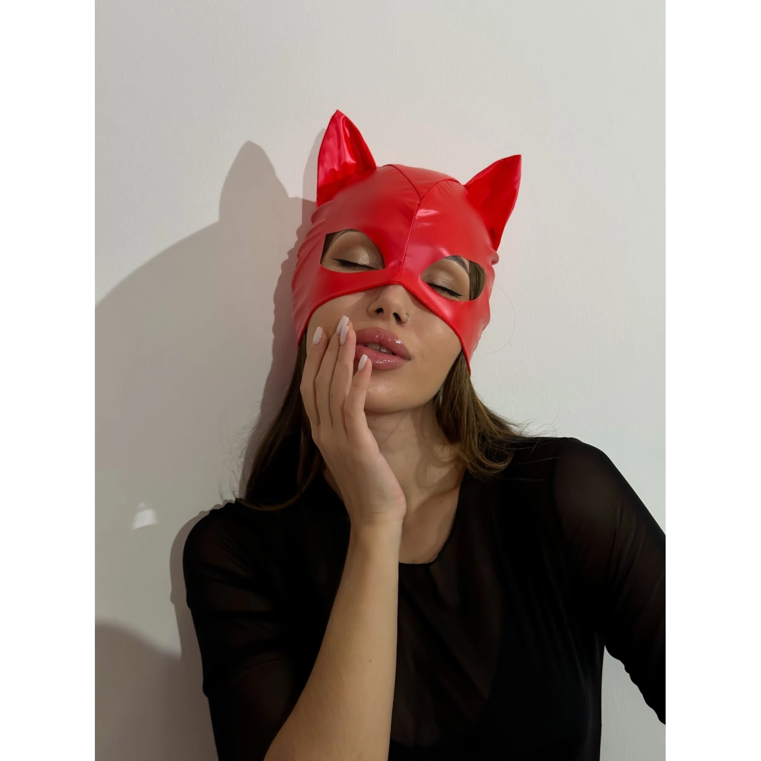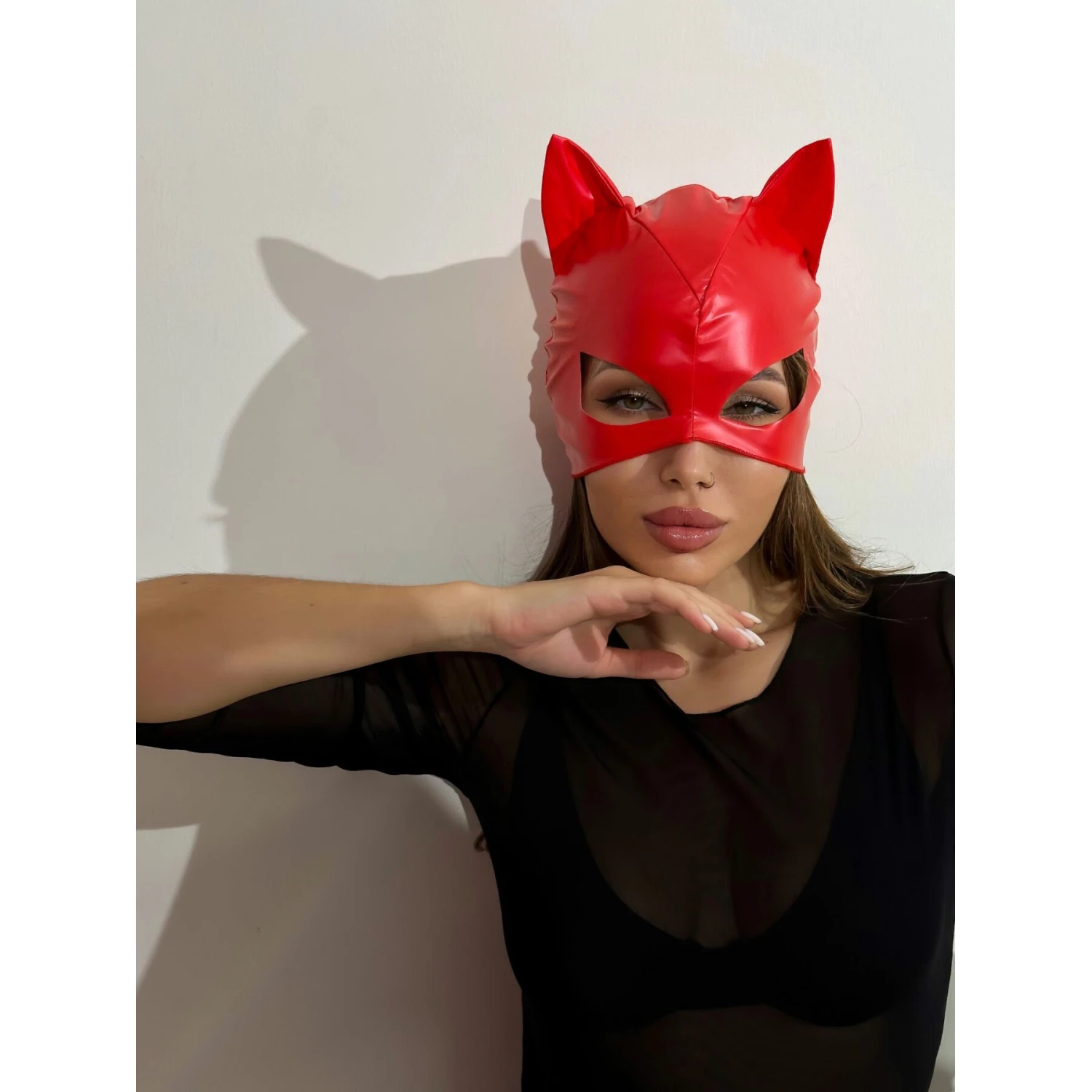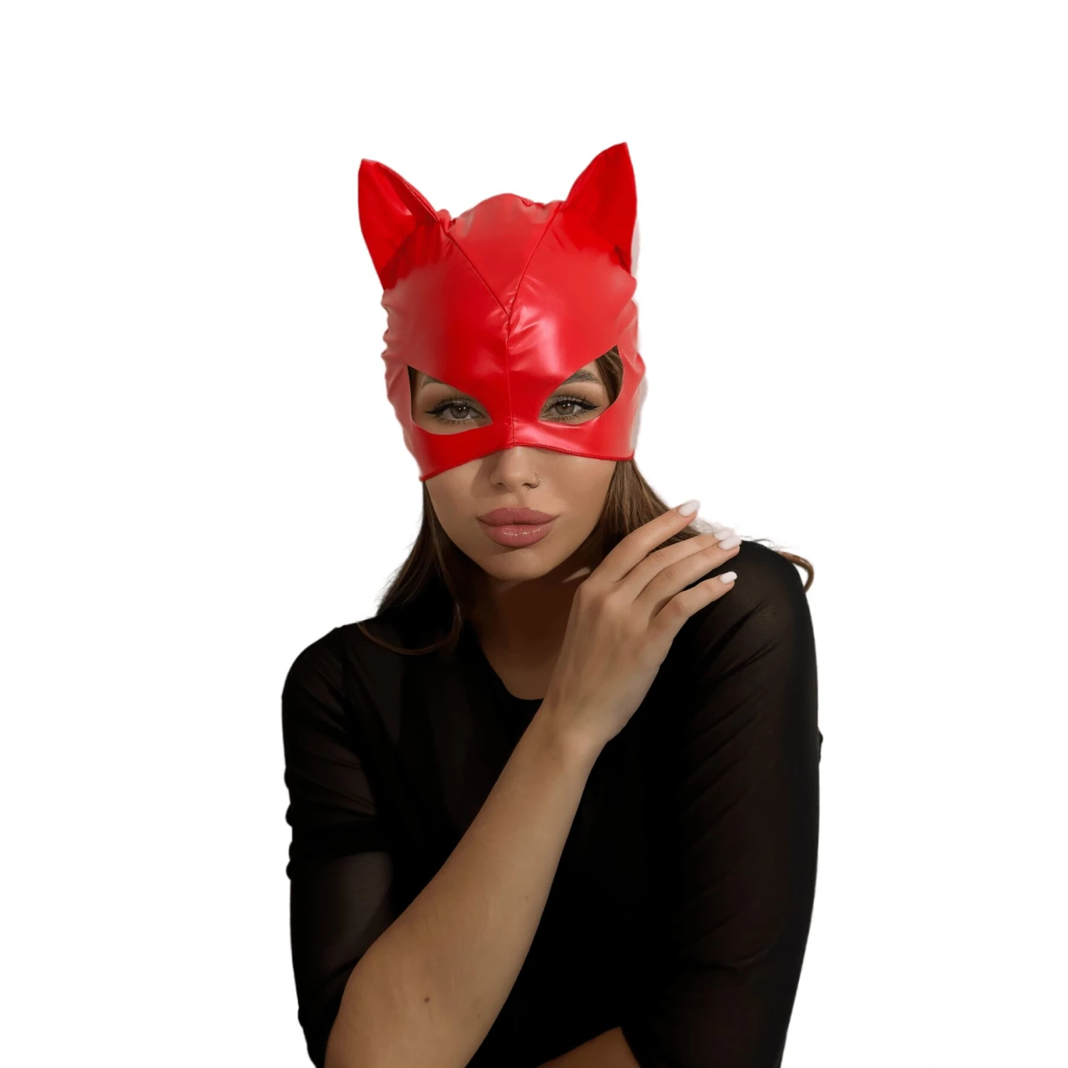 Лакированная маска “Кошка” изготовлена из мягкого и эластичного материала, имитирующего лакированную кожу. Маска на приятной не синтетической подкладке, с аккуратными не жесткими швами, поэтому ее использование не будет вызывать дискомфорта. Игриво торчащие мягкие ушки и “кошачий” разрез для глаз, помогут Вам почувствовать себя настоящей героиней фильма или комиксов про супергероев. Маска закрывает большую половину лица и одевается, как шапочка, что дает возможность не делать яркий макияж, Вы можете просто слегка подвести глаза и добавить яркий акцент в виде красной помады.