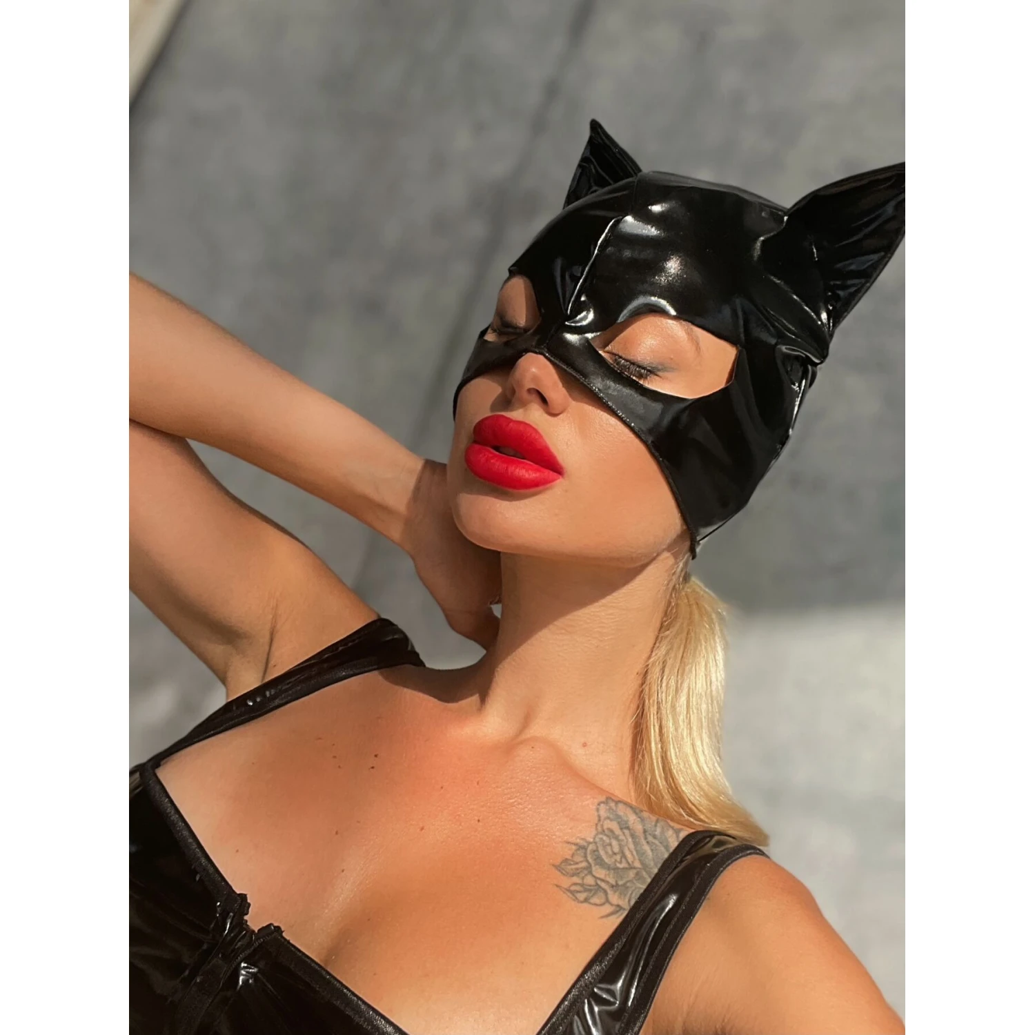 Лакированная маска “Кошка” изготовлена из мягкого и эластичного материала, имитирующего лакированную кожу. Маска на приятной не синтетической подкладке, с аккуратными не жесткими швами, поэтому ее использование не будет вызывать дискомфорта. Игриво торчащие мягкие ушки и “кошачий” разрез для глаз, помогут Вам почувствовать себя настоящей героиней фильма или комиксов про супергероев. Маска закрывает большую половину лица и одевается, как шапочка, что дает возможность не делать яркий макияж, Вы можете просто слегка подвести глаза и добавить яркий акцент в виде красной помады.