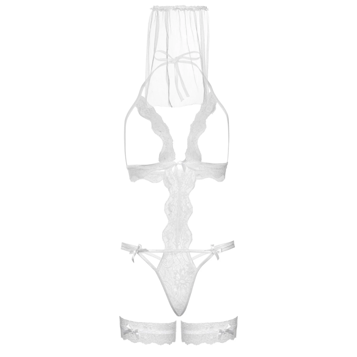 В комплект входит: боди с открытой грудью, фата, 1 подвязка гартер.