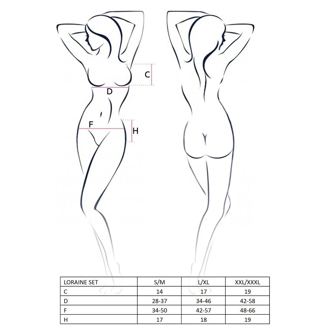 Будь неотразима! Именно поэтому, мы предлагаем купить LORAINE SET - потрясающий комплект. Сексуальный, при этом без намека на вульгарность. Лучший наряд для романтической встречи. В комплекте бюстгальтер, стринги и пояс для чулок. Дополни образ чулками на свой вкус и покоряй спутника своим безупречным видом. Удачное сочетание цветов, прозрачные вставки с узорами и высокое качество исполнения - главные характеристики LORAINE SET. С LORAINE SET ты - женщина мечты!