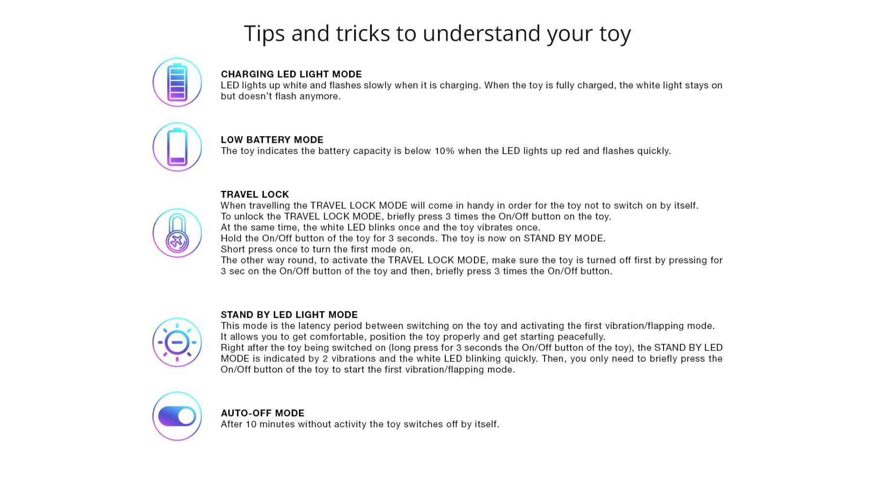 - Игрушка обладает туристическим замком, благодаря чему не активируется в сумочке, а значит вы смело можете брать её с собой.