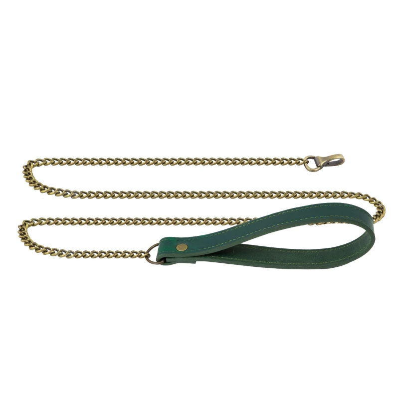 LOVECRAFT — Поводок зеленый из натуральной кожи