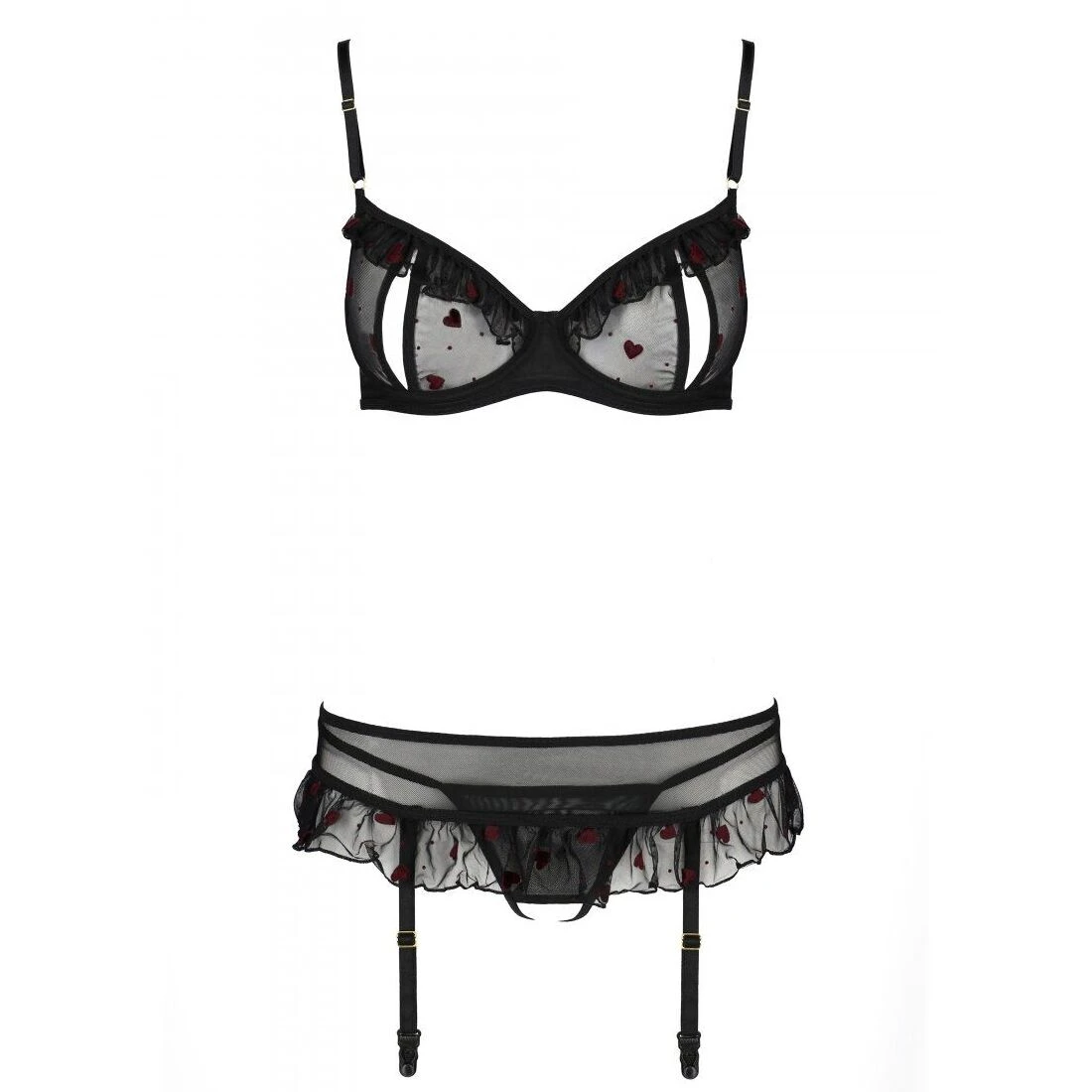 Ищете необычное белье, соблазнительное, комфортное и качественное? Вы его нашли! Рекомендуем купить сексуальный комплект с поясом для чулок LOVELIA SET black L/XL — Passion. В комплект входит шикарный бюстгальтер с плотной чашкой на косточках, которая отлично держит грудь, пояс для чулок с юбочкой и трусики—стринги с доступом — все, чтобы обычное свидание превратить в фантастическое эротическое приключение.