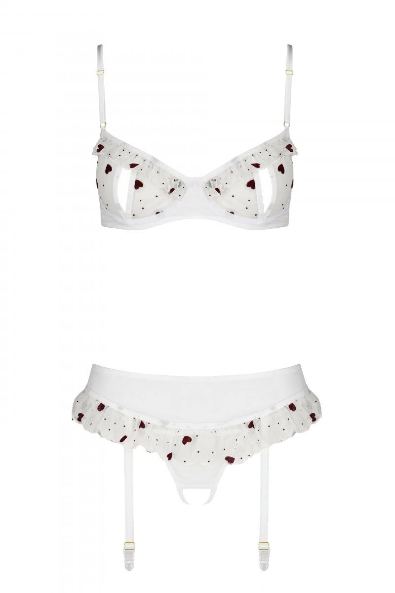 Ищете необычное белье, соблазнительное, комфортное и качественное? Вы его нашли! Рекомендуем купить сексуальный комплект с поясом для чулок LOVELIA SET white S/M — Passion. В комплект входит шикарный бюстгальтер с плотной чашкой на косточках, которая отлично держит грудь, пояс для чулок с юбочкой и трусики—стринги с доступом — все, чтобы обычное свидание превратить в фантастическое эротическое приключение.