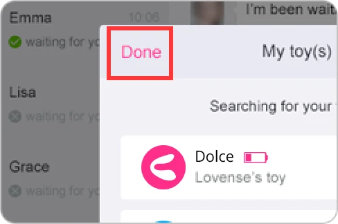 - Как только произойдет коннект с вибратором Ловенс, нажмите «Готово».
