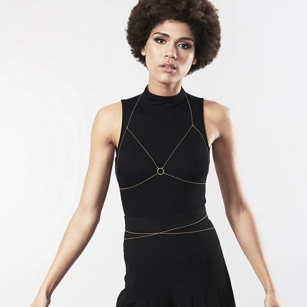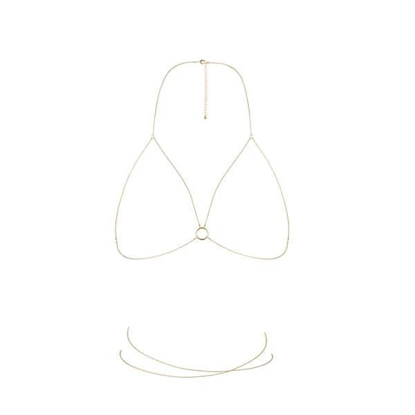 Если вы хотите подчеркнуть красоту груди и при этом не выглядеть агрессивно сексуальной, рекомендуем купить украшение-портупея Bijoux Indescrets Magnifique Bra Chain Gold - максимально изящный вариант портупеи из золотистой цепочки, соблазнительно охватывающей грудь и подчеркивающей талию.
