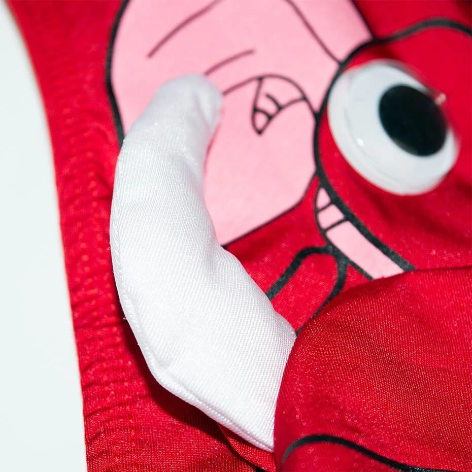 Мужские эротические трусы Слоник с бивнями представляют собой не столько сексуальный предмет гардероба, сколько возможность повеселить свою половинку. Ведь они созданы в виде маленьких трусиков красного цвета, что имеют глаза, кокетливые ушки и даже слоновьи бивни и, конечно же, длинный хобот.