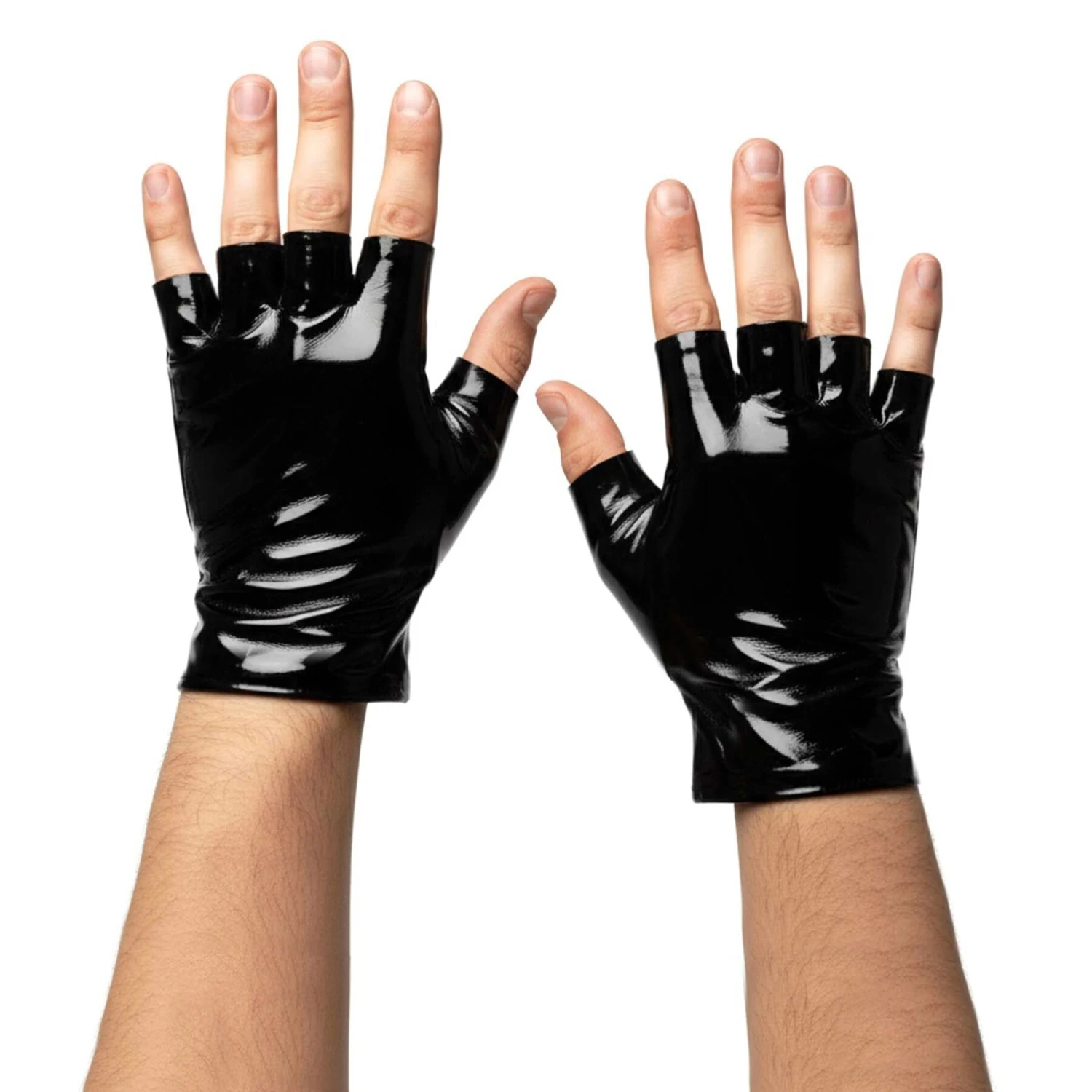 Изготовленные из эластичного винила, перчатки плотно облегают руку, словно вторая кожа, и эффектно блестят на свету, подчеркивая движения и добавляя визуальной драматичности. Материал позволяет ощущать полную свободу движений и одновременно придает образу сексуального напряжения и силы.
