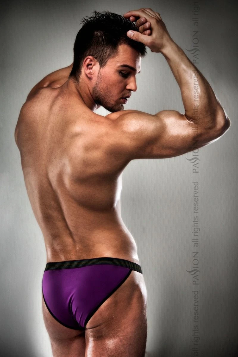 Передняя часть трусов дополнена широкой резинкой и небольшими бретелями, что помогает визуально сделать член более акцентированным и привлекательным.