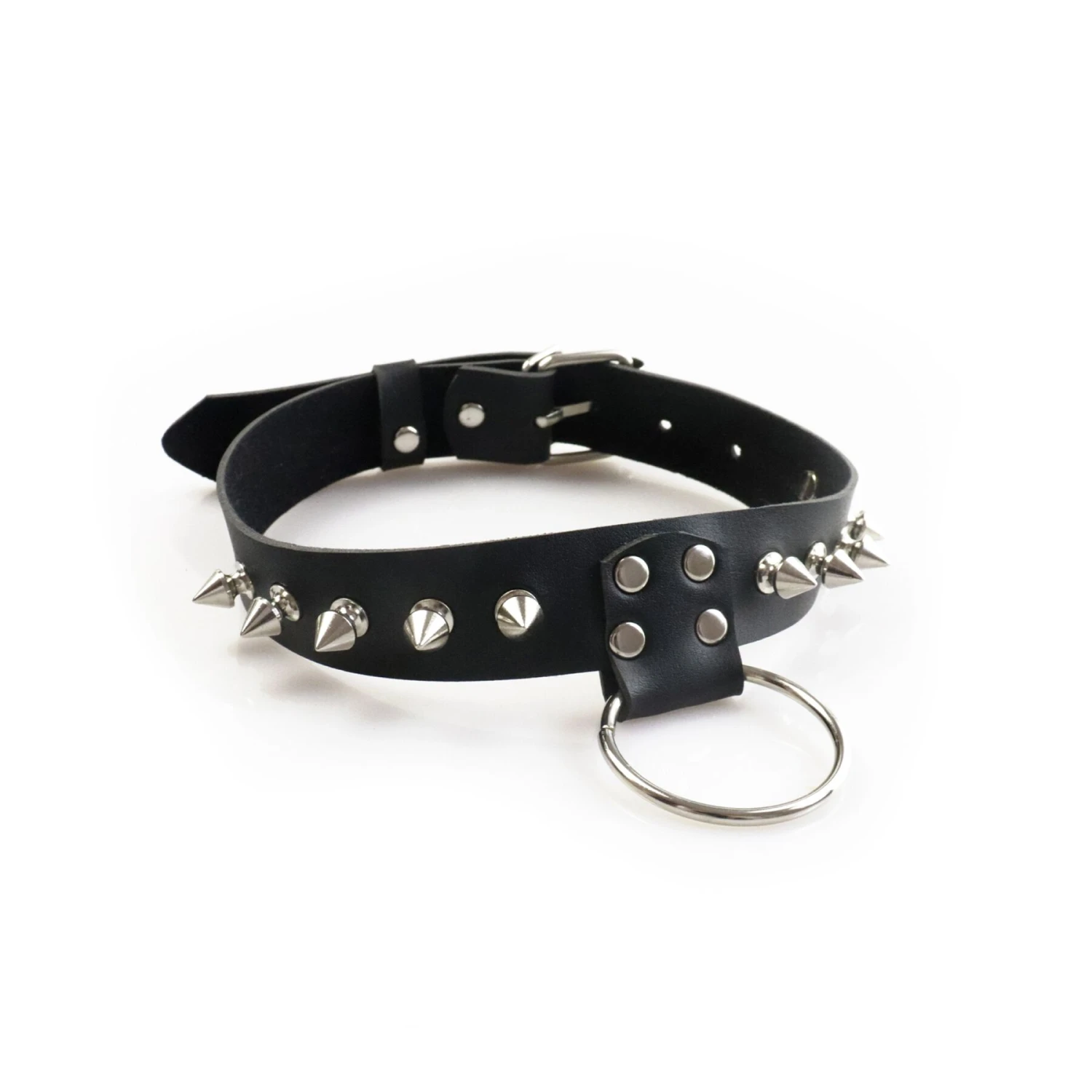 Изготовленный из высококачественной кожи с использованием сверхпрочной металлической фурнитуры, этот чокер сочетает в себе дизайн, удобство и эффективность. Чокер украшен большим металлическим кольцом, к которому можно подсоединить поводок. Такая комбинация обеспечит множество вариантов для реализации ваших горячих фантазий и поможет глубже погрузиться в мир игр с доминированием и подчинением. Также чокер украшен острыми металлическими шипами, которые создают ощущение опасности, но при этом выглядят очень сексуально.