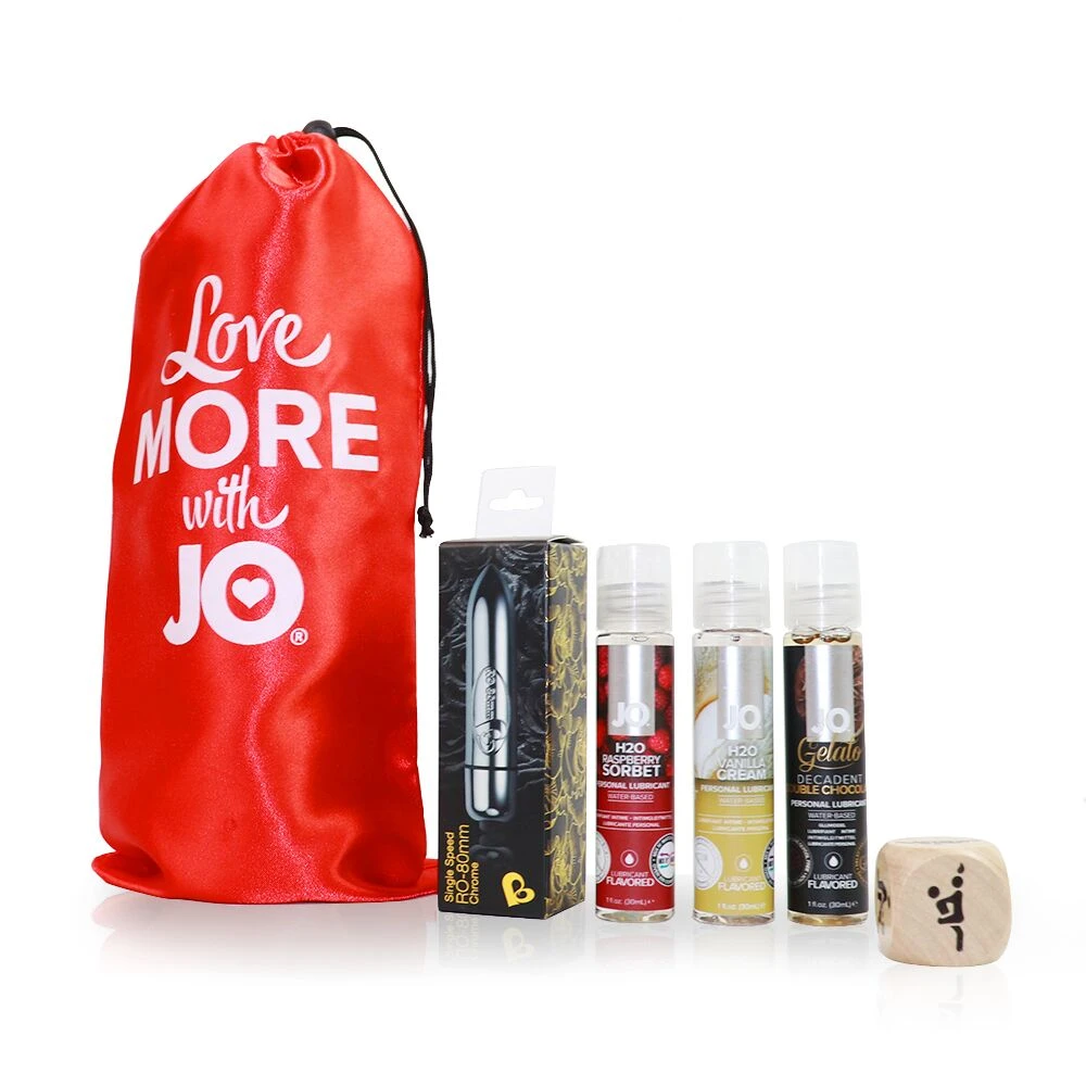 Останавливая выбор на наших наборах, вы экономите не только время, но и получаете комплект из секс-игрушек и смазок на 15% дешевле, чем стоимость этих же товаров по отдельности. Наши наборы будут радовать вас и вашего партнера не один вечер, превращая любовную игру в незабываемое приключение. Упакованный в фирменный атласный мешочек красного цвета System JO, набор станет шикарным подарком по любому поводу.