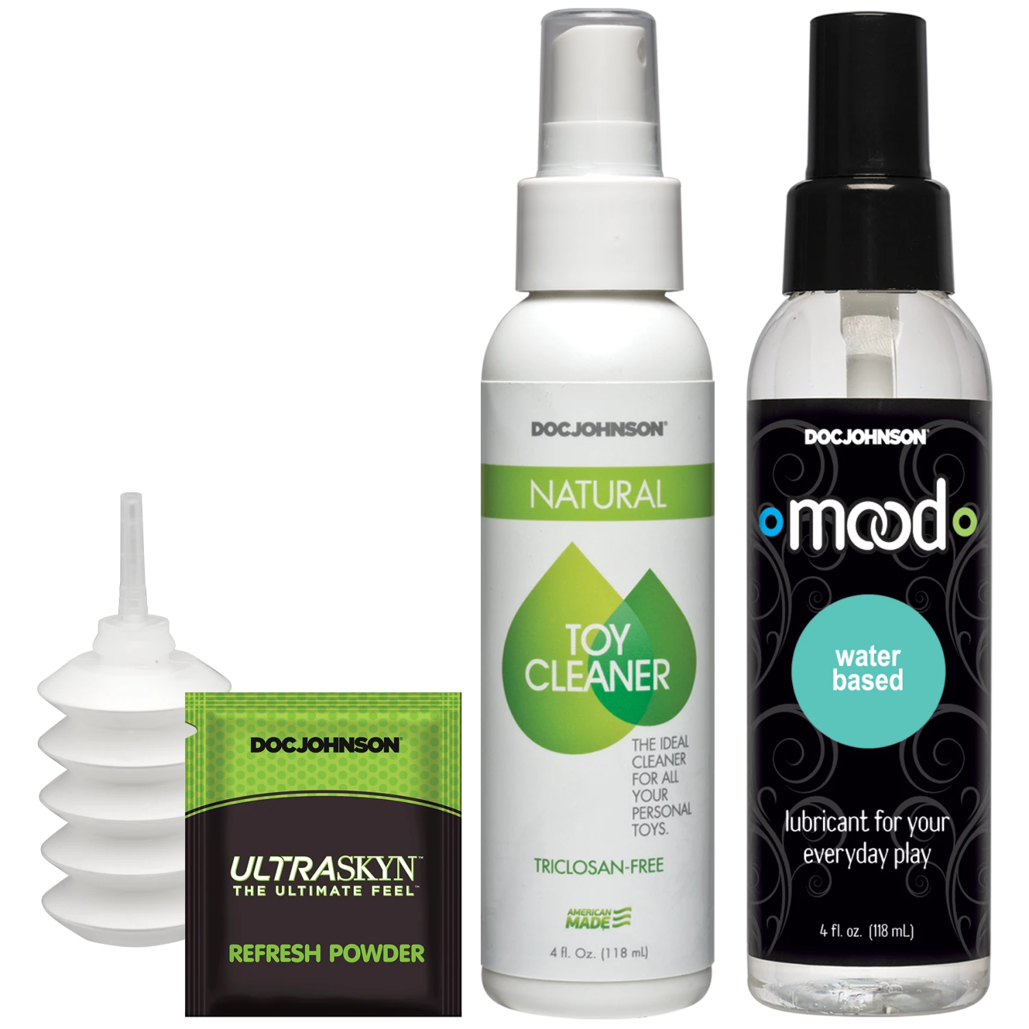 Vac-U-Lock Dual Density Experienced Sett - эксклюзивный набор страпонов, разработанный специально для самых требовательных пользователей, включающий в себя полный комплект всего необходимого для невероятных секс приключений! А именно: 3 огромных фаллоса различных форм, выполненных из уникального материала Ultraskyn (как настоящая кожа) по технологии двойного эффекта плотности и мягкости, 3 уплотнительных кольца, 2 штекера (с защелкой и на присоске), удобных трусиков c регулировкой охвата талии, смазка и очиститель (по 118 мл каждый).