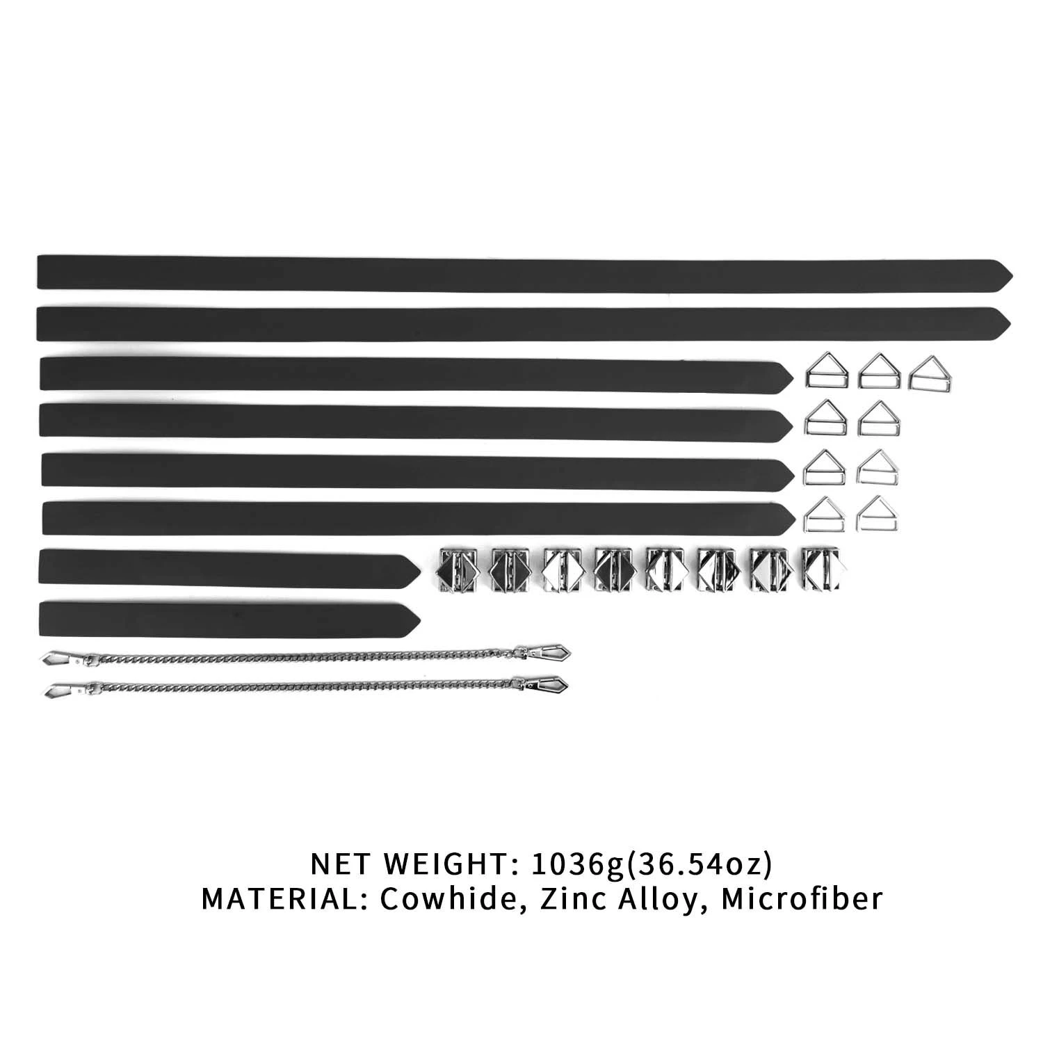 Главная и примечательная особенность набора – его материал. Он изготовлен из натуральной бычьей кожи – покрытия, которое хорошо известно своим качеством, шелковистостью и долговечностью. Натуральная кожа приятна к телу, не вызывает раздражения, а потому вашему партнеру не будет дискомфортно, если вы жестко затянете ремень.