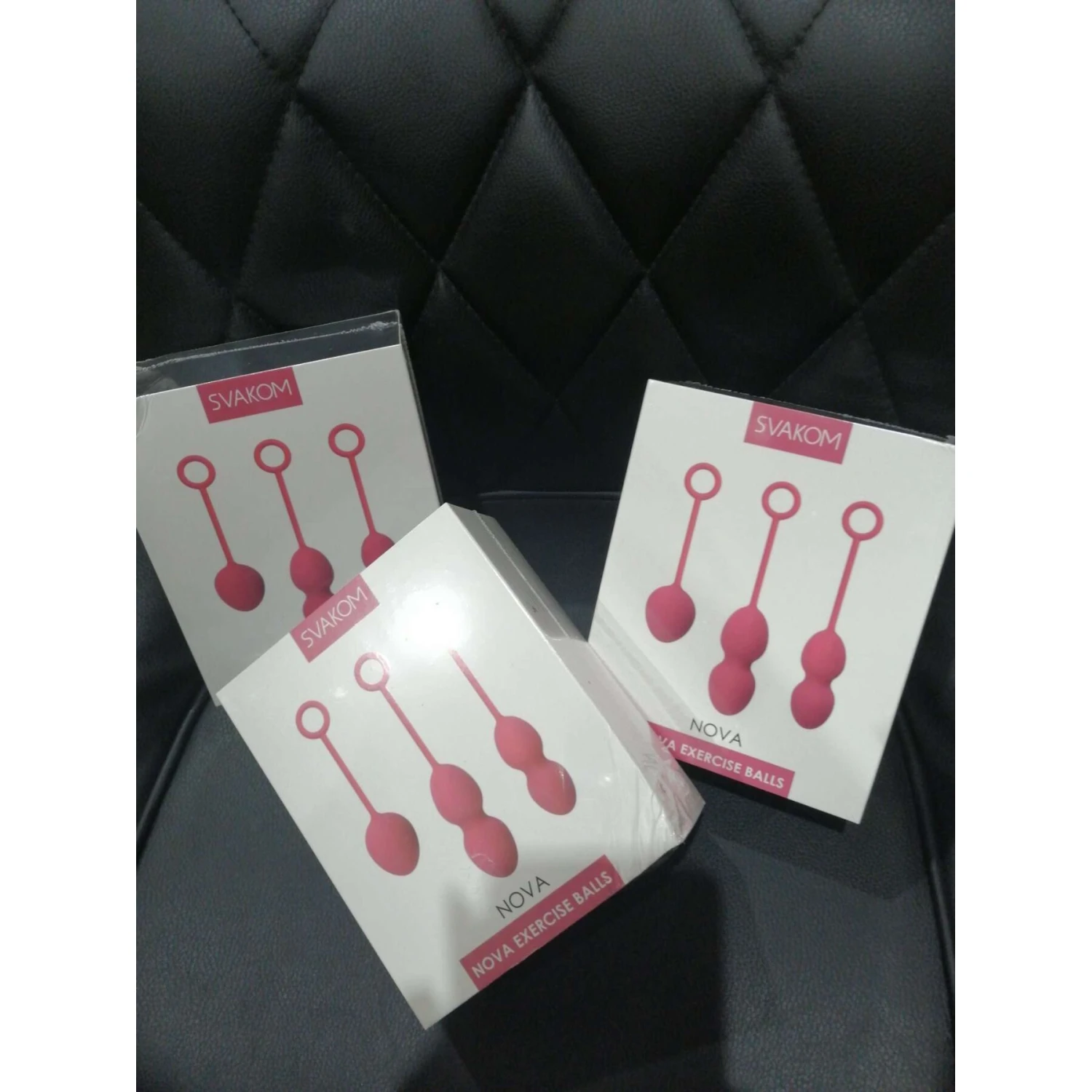 Предлагаем купить набор вагинальных шариков со смещенным центром тяжести Svakom Nova Plum Red — уникальный интимный аксессуар, который поможет укрепить вагинальные мышцы, повысить упругость стенок влагалища, усилить удовольствие во время близости, а также — восстановиться после родов. В набор входит три тренажера разного диаметра и массы для прогрессивных тренировок. Нестабильный центр тяжести — перекатывающийся внутри шарик — повышает эффективность занятий и добавляет приятных ощущений!