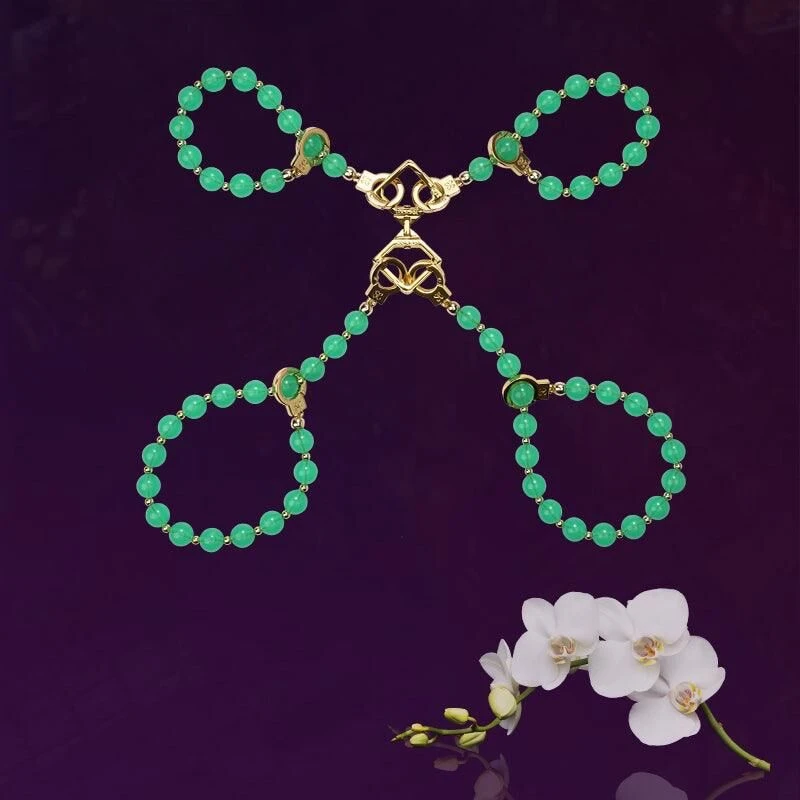 Гладкая прохладная поверхность камня привлекает прикосновениями, а глубокий оттенок нефрита добавляет премиальности и стиля. Такой комплект отлично подойдёт как для деликатных БДСМ-сцен, так и для романтических экспериментов.