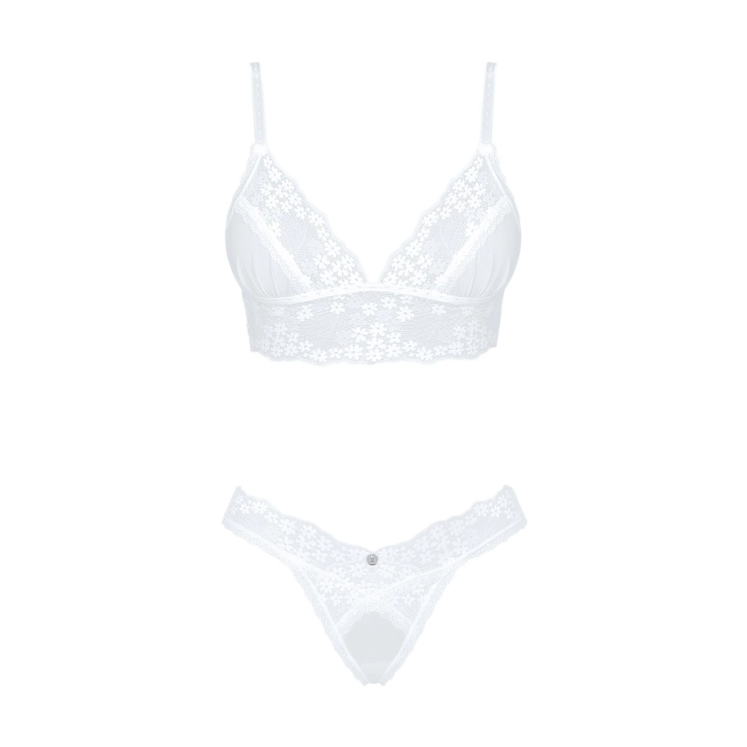Эротический комплект Obsessive Heavenlly 2-pcs set состоит из бюстгальтера и трусиков танга. Набор упакован в симпатичную коробочку, потому может стать чудесным подарком на любой праздник или просто так.