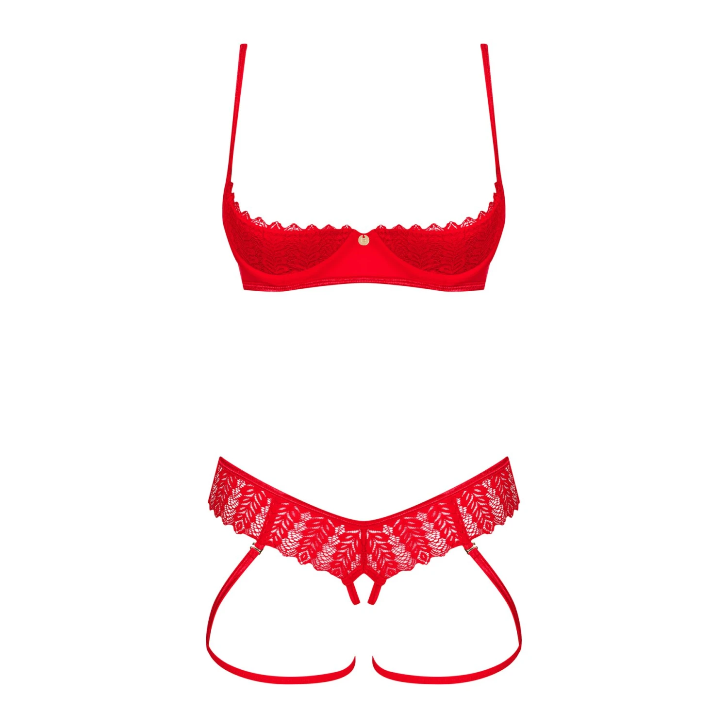 Хотите этим вечером надеть нечто совершенно особенное и безудержно сексуальное? Рекомендуем купить комплект Obsessive Ingridia 2-pcs crotchless set. Этот мини-комплект — квинтэссенция интимных фантазий. Судите сами: бюстгальтер с мягкими получашками, которые вовсе не прикрывают грудь, а наоборот, показывают ее во всей красе; низкие трусики-тонги с открытой промежностью, которую, только пожелай, можно утопить в ласках; эластичные стрепы, которые красиво ложатся вокруг ног под попкой, пробуждая самые потаенные желания.