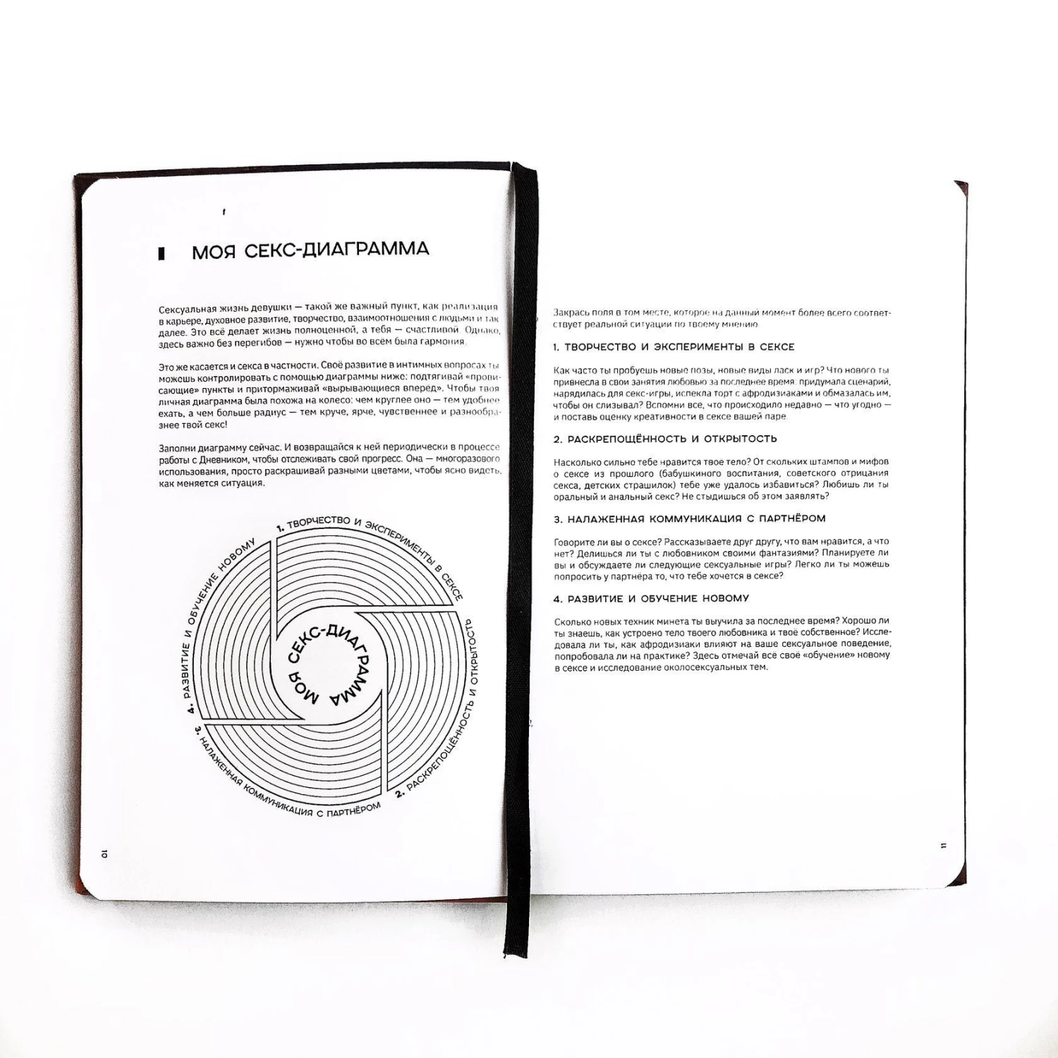 Хочешь стать идеальной любовницей, без комплексов и всегда готовой дарить и получать удовольствие? Избавиться от страхов и научиться самым секретным техникам секса? Теперь это все доступно — нужно только купить интимный дневник Sex Diary, каждая страничка которого посвящена разным видам секса, телесным наслаждениям и практикам и максимальному удовольствию. Есть место для записи своих идей, достижений и результатов экспериментов!