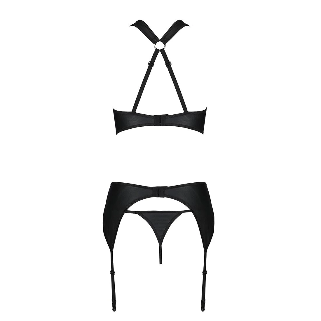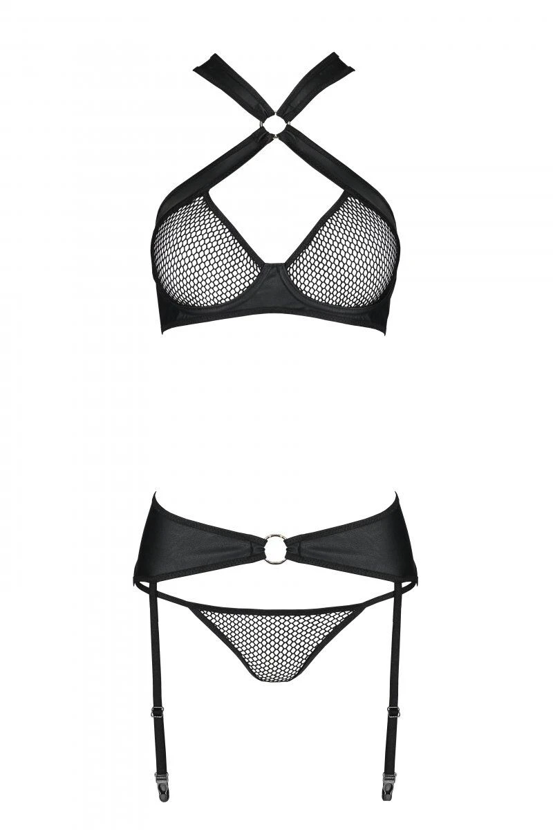Сетчатый набор: бюстгальтер с халтером, трусики и пояс для чулок Amanda Set black S/M - Passion: