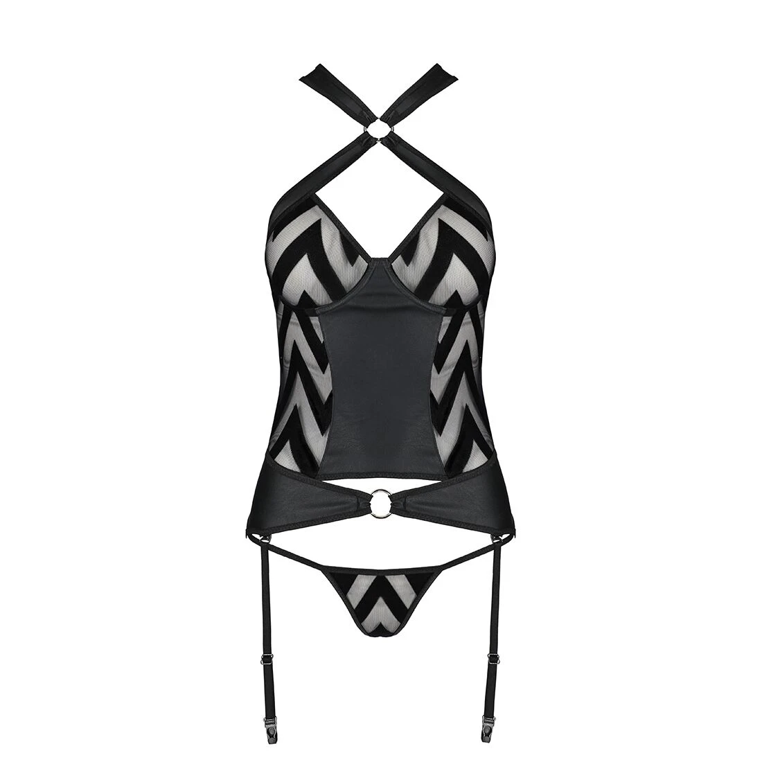 Сетчатый комплект с узором: корсет с халтером, подвязки, трусики Hima Corset black XXL/XXXL - Passion: