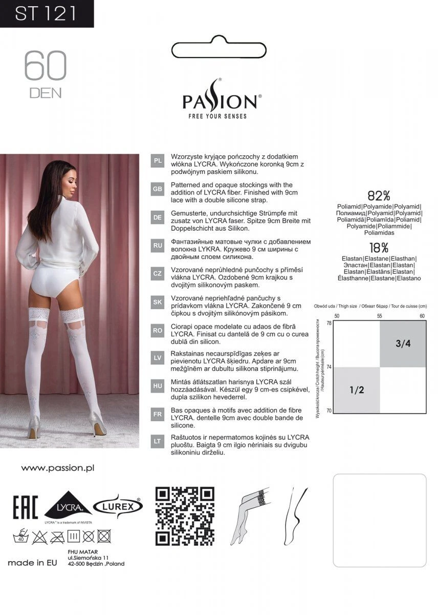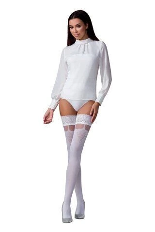 Продемонстрируйте высший пилотаж женственности, нежности и легкости, купите чулки Passion ST121 1/2 белые, на ажурной силиконовой резинке, с цветочным орнаментом и вертикальным швом.