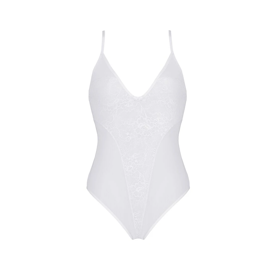 Боди с ажурным декором и открытым шагом Ursula Body white S/M — Passion: