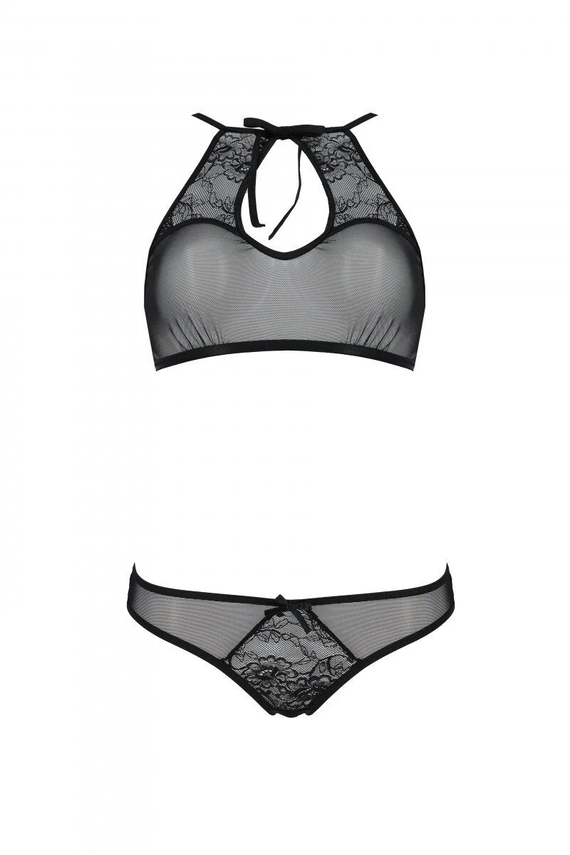Создайте одновременно сексуальный и нежный образ, купите комплект: бра, трусики с ажурным декором и открытым шагом Ursula Set black XXL/XXXL — Passion: